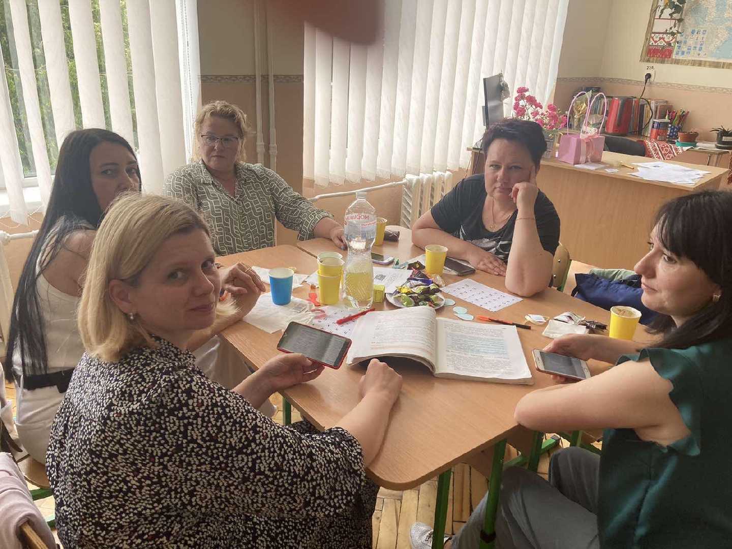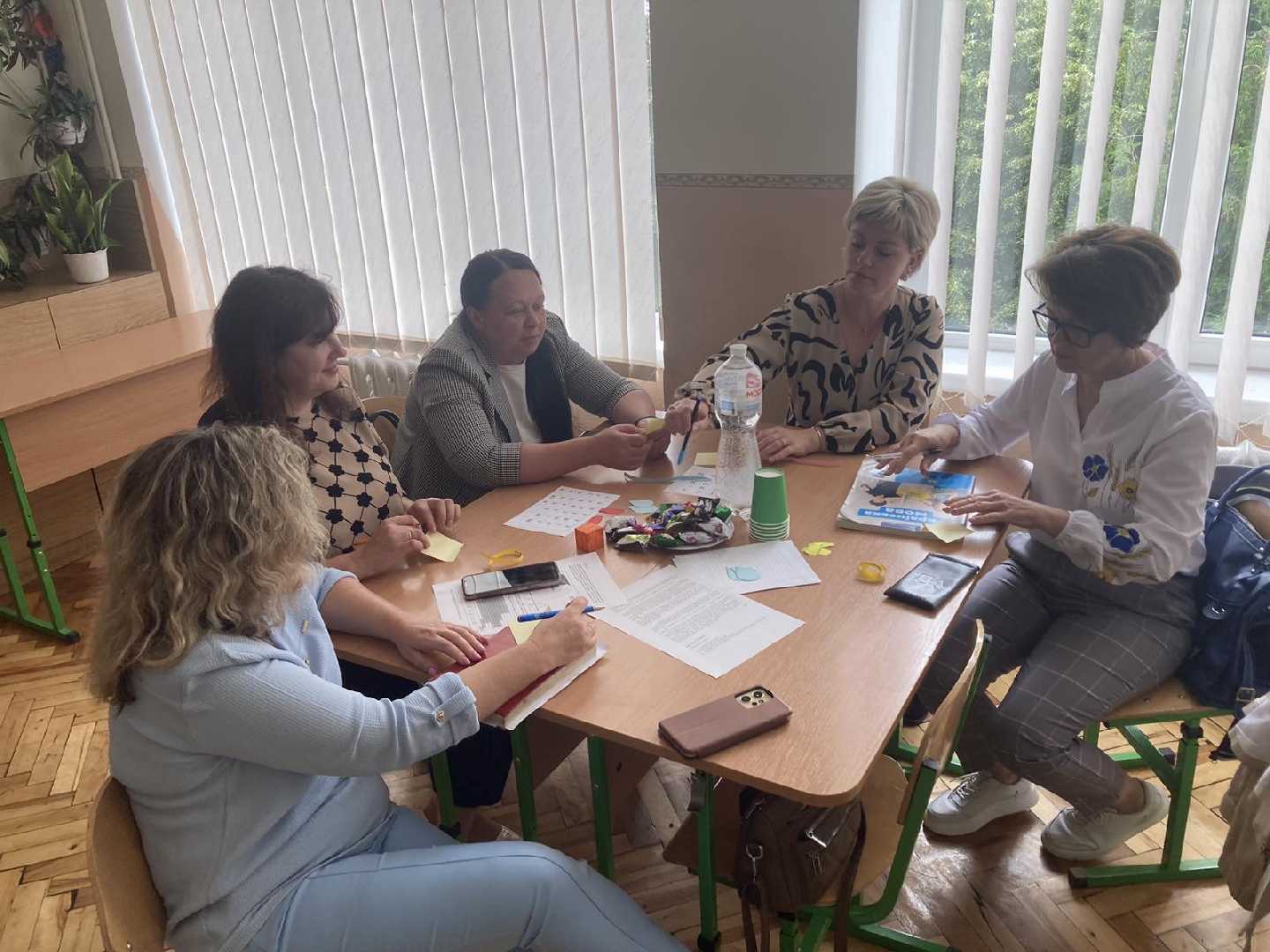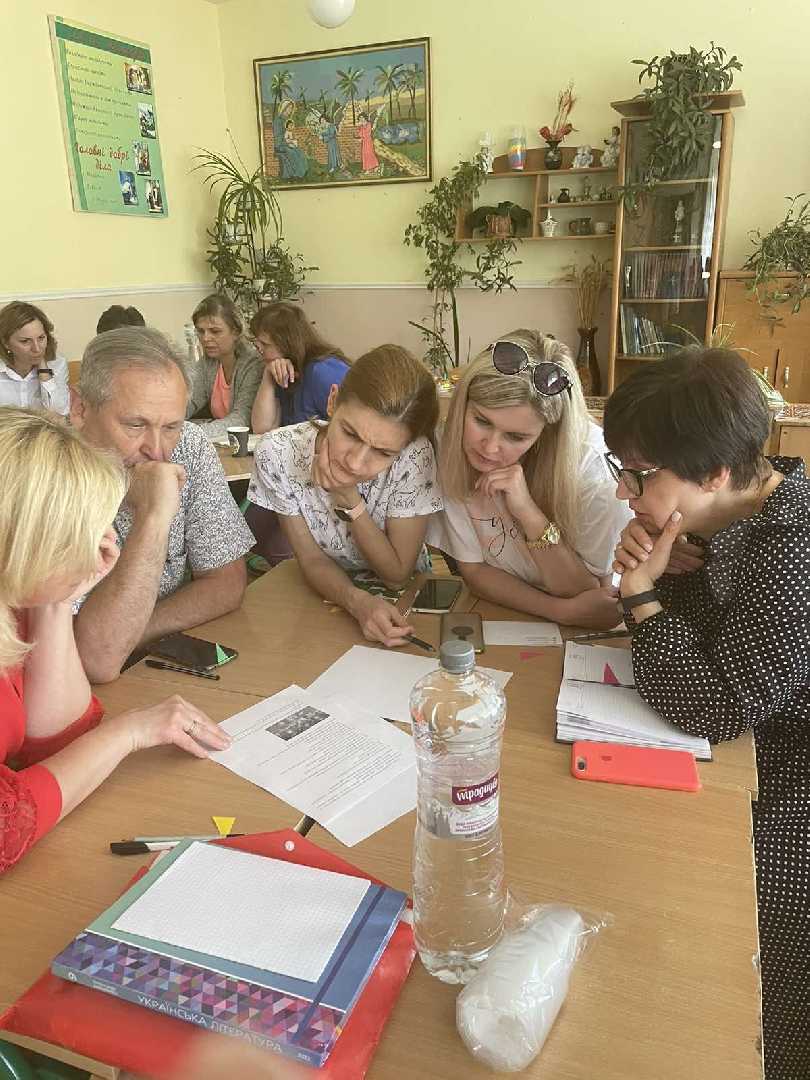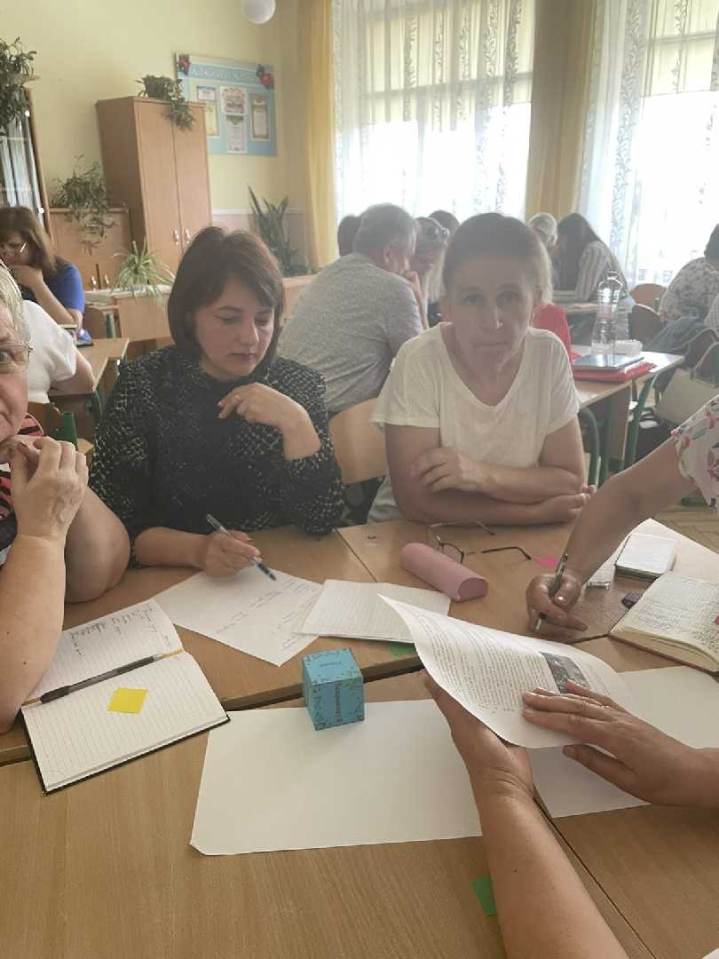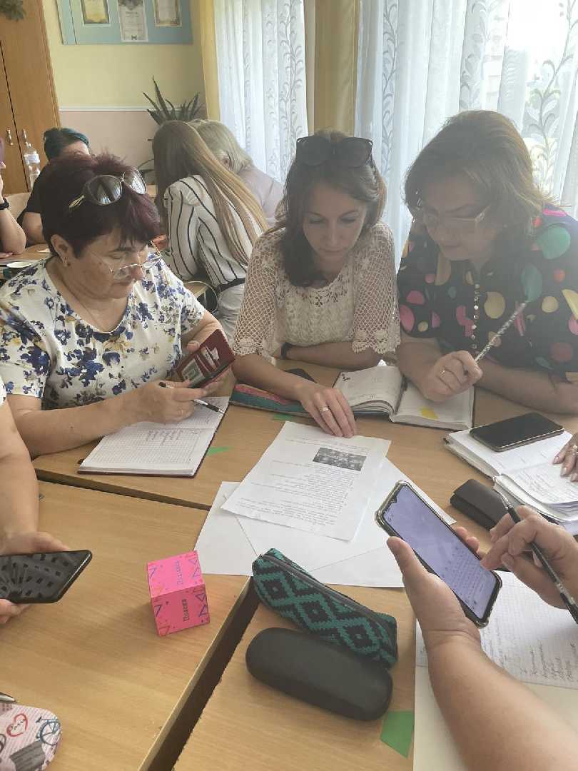 Працюючи в групах, учителі створювали множинні тексти та формулювали такі запитання до них, за допомогою яких учні змогли б вчитуватися уважно, порівнювати, шукати спільне та відмінне, робити висновки. Зацікавили слухачів курсів такі форми роботи, як диктанти на запам’ятовування в групі, формулювання запитань до теми за допомогою кубика Блума, чітке розуміння та виконання інструкційних карток, нетрадиційні форми об’єднання у групи, рефлексія за кодовим словом «ІДЕЯ» тощо.