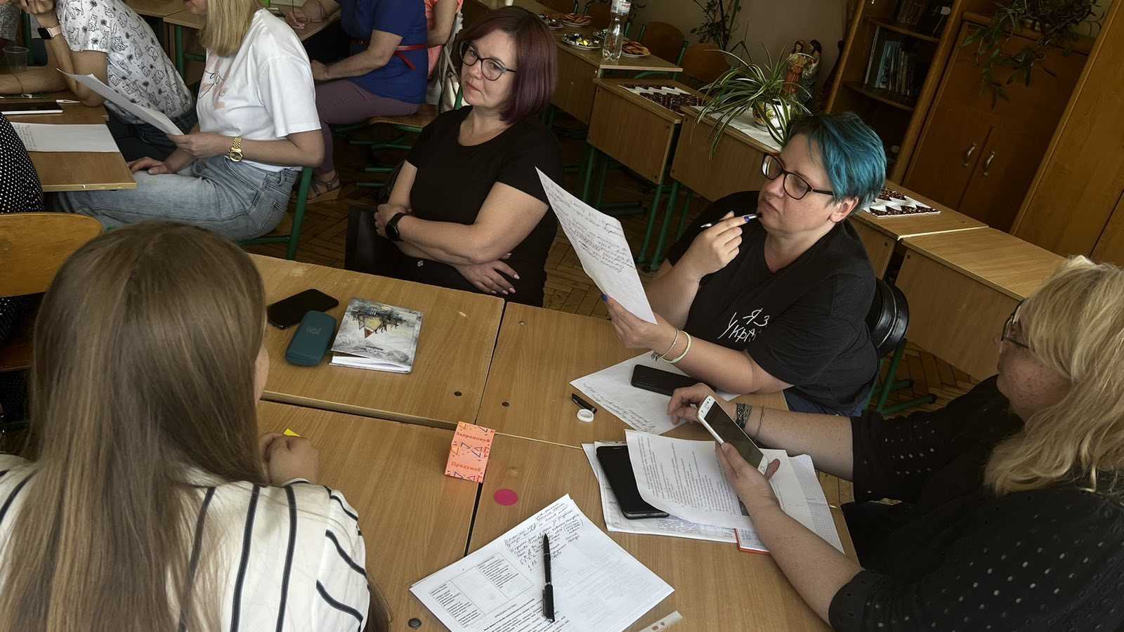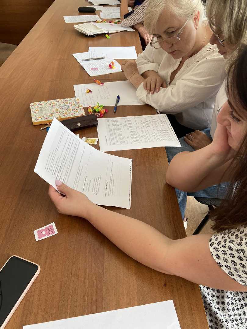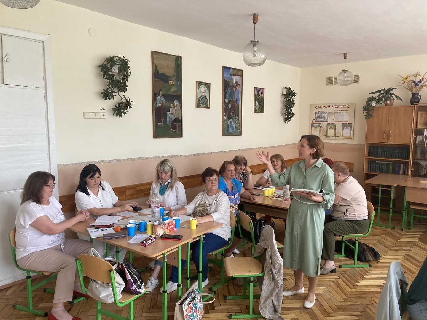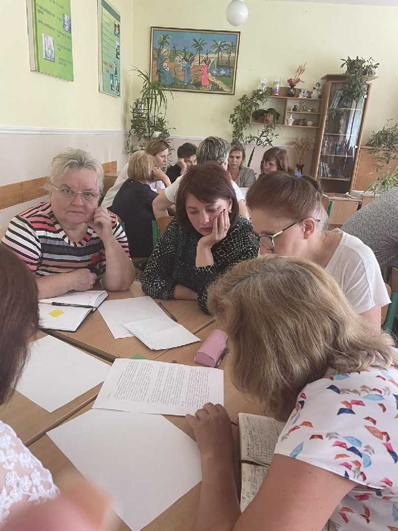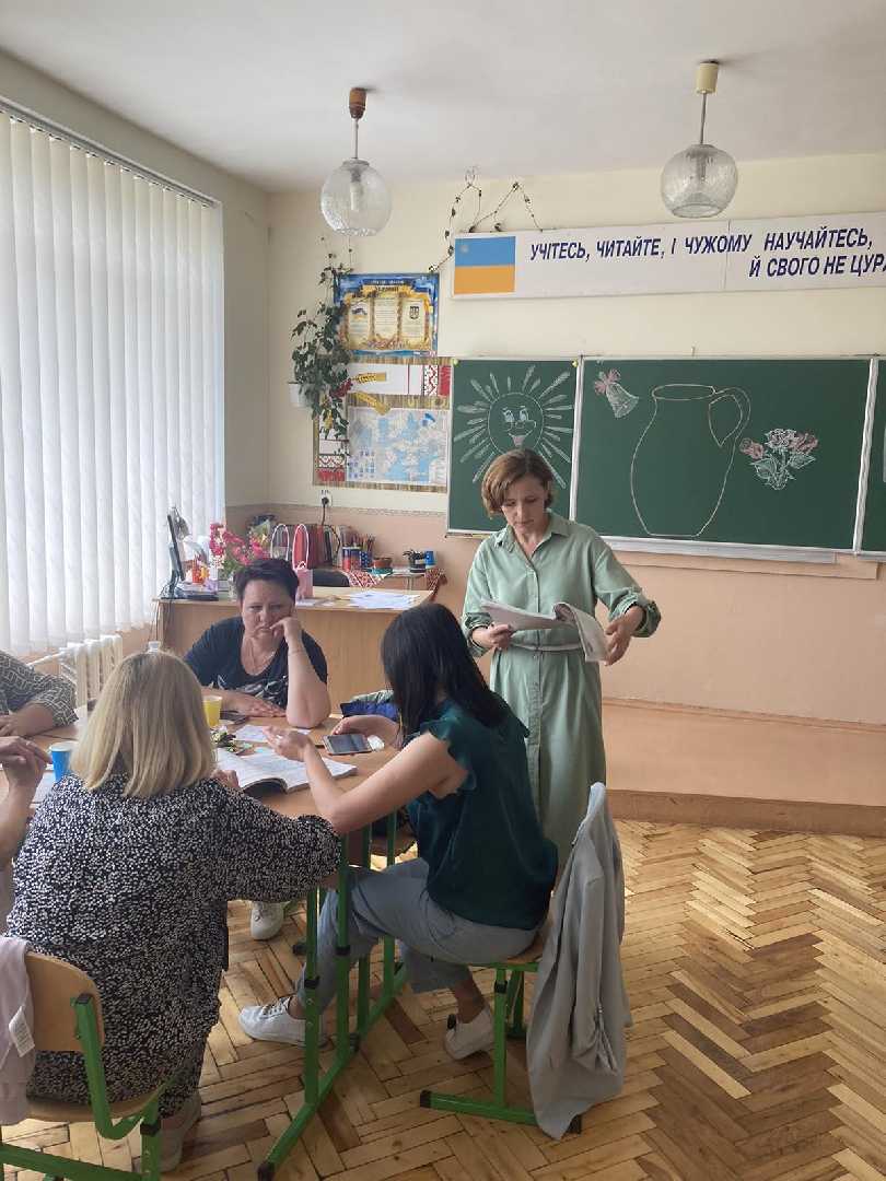 Працюючи в групах, учителі створювали множинні тексти та формулювали такі запитання до них, за допомогою яких учні змогли б вчитуватися уважно, порівнювати, шукати спільне та відмінне, робити висновки. Зацікавили слухачів курсів такі форми роботи, як диктанти на запам’ятовування в групі, формулювання запитань до теми за допомогою кубика Блума, чітке розуміння та виконання інструкційних карток, нетрадиційні форми об’єднання у групи, рефлексія за кодовим словом «ІДЕЯ» тощо.