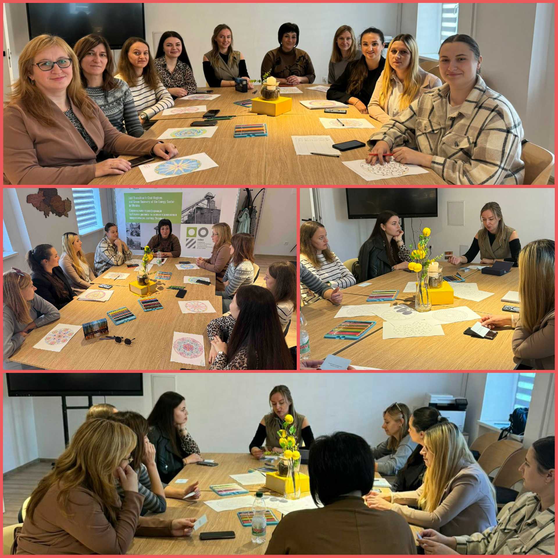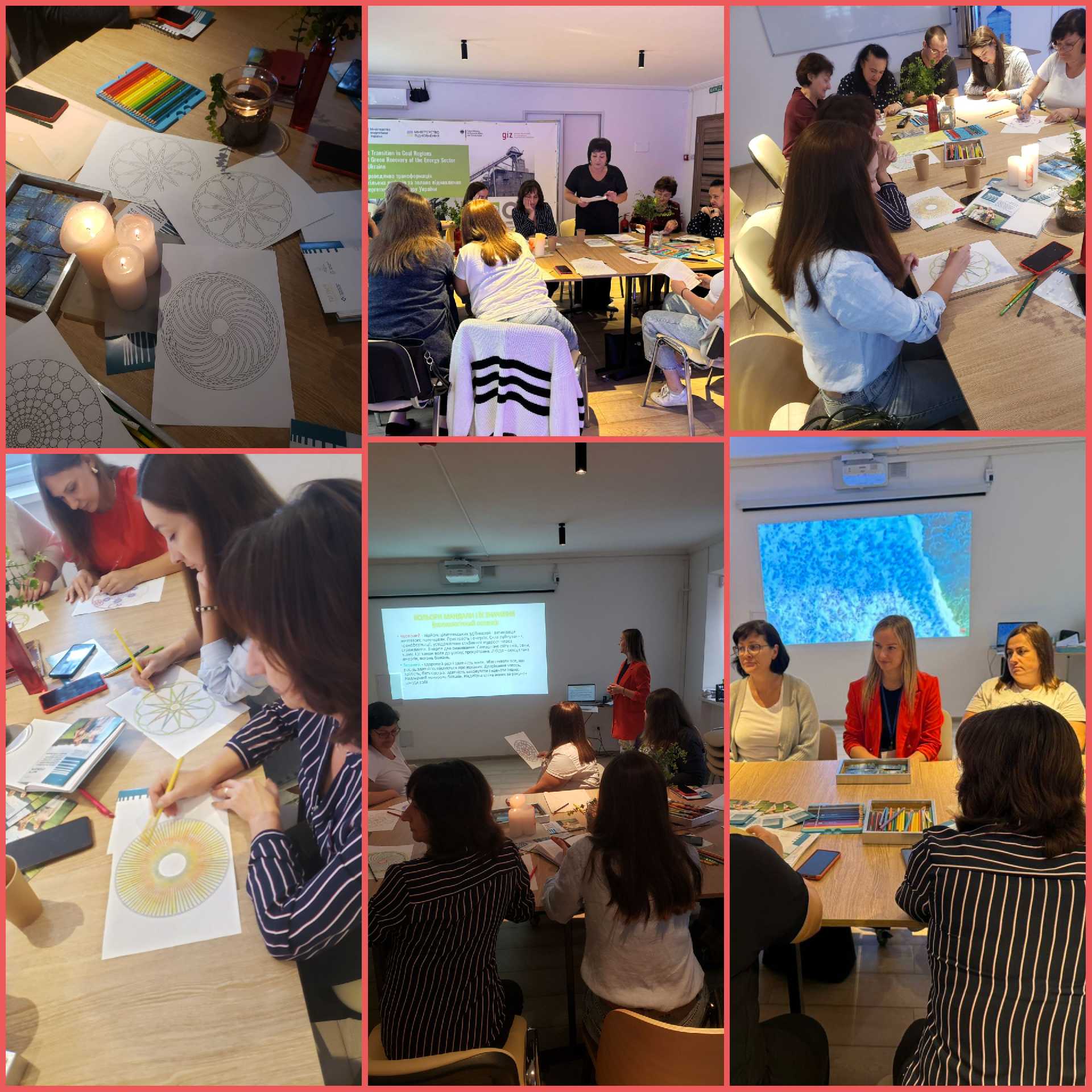 Під час тренінгу працювали з техніками стабілізації, провели самодіагностику емоційного стану, використовували метафоричні картки, опанували ресурсну техніку «Мандала».