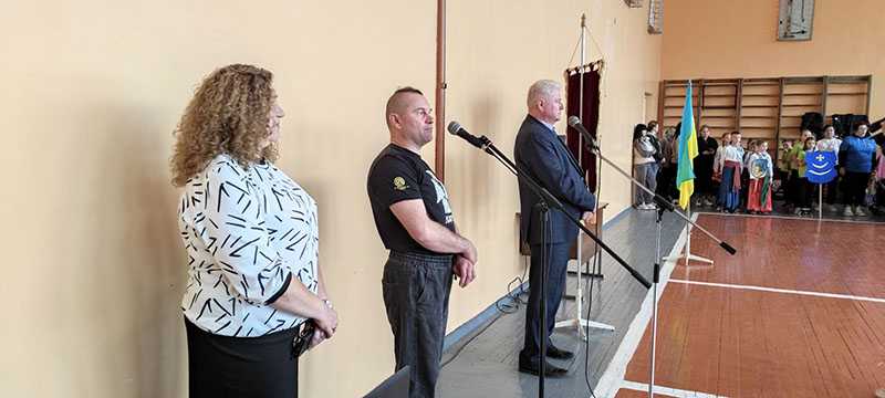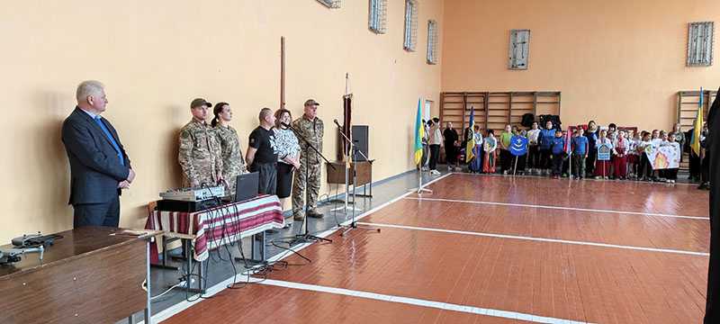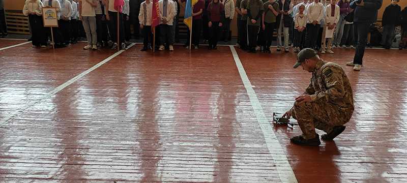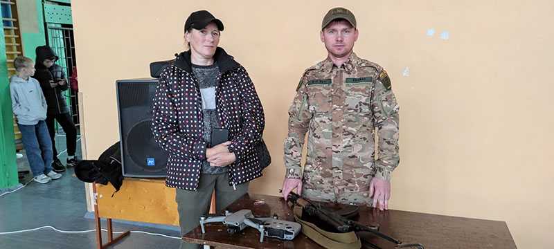 Директор КЗ "Будинок Воїна" Михайло Палюга та його заступниця Ольга Мирончук продемонстрували роботу безпілотника, навчали учнів правильного поводження зі зброєю та прийомами стрільби із пневматичної гвинтівки.