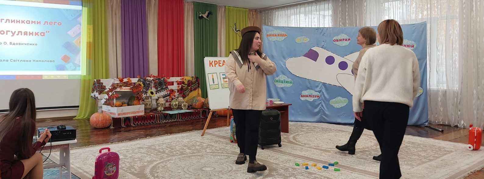 Світлана ШОСТАК, вихователь закладу провела з присутніми авіаподорож з авіакомпанією «LEGO-air» по країнах «Математія», «Музичнотепія», «Конструювання», «Мовлення» та островах «Тварин» і «Творчість»