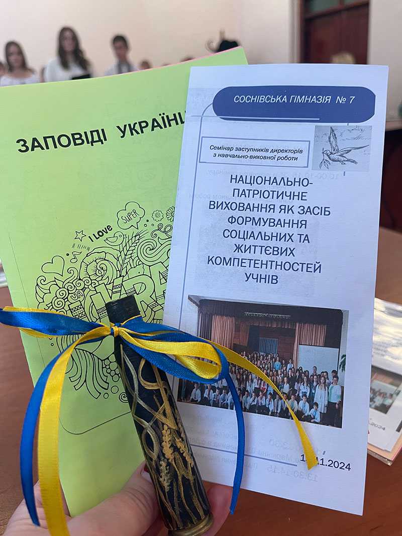 Платформою для ефективного обміну досвідом, спільного пошуку рішень та підтримки високого рівня виховної роботи став семінар заступників директора з навчально-виховної роботи ЗЗСО «Національно-патріотичне виховання як засіб формування соціальної та життєвої компетентності учнів», який відбувся 13 листопада у Соснівській Гімназії №7. У гості колег запросила Наталія Касьянова, заступник директора з НВР, яка поділилась власним досвідом, напрацюваннями виховної роботи, розповіла про участь у тематичних заходах, колективних проєктах, громадських ініціативах і волонтерській діяльності. Наталія Йосипівна підготувала колегам цікаві активності, які організували до командної роботи, створивши дружню атмосферу семінару, позитивний настрій.
