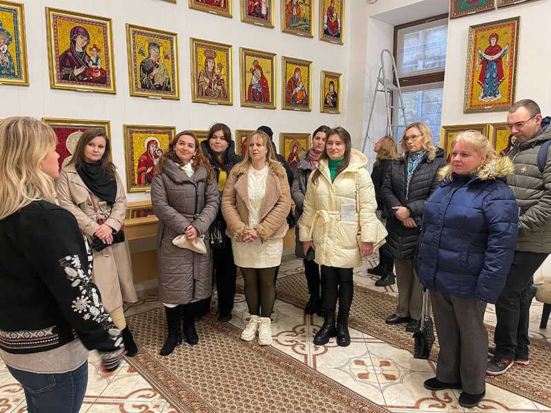 Чудовим відкриттям для учасників семінару став єдиний в Україні музей сакральної вишивки, який започаткував отець доктор Дмитро Блажейовський, автор вишиваних ікон, хоругв, християнських святих і портретів визначних осіб. Дякуємо Наталії Струк, екскурсоводу музею, за цікаву пізнавальну розповідь, за теплу атмосферу екскурсії.