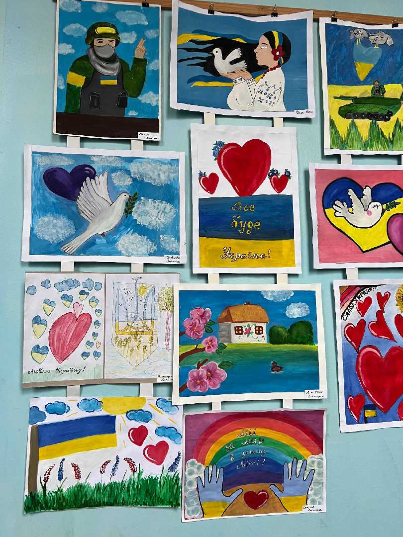 Учні арт-студії «Хамелеон» (керівник — Юлія Стахів) представили зворушливу виставку, сповнену вдячності, любові та світлих мрій про мир.