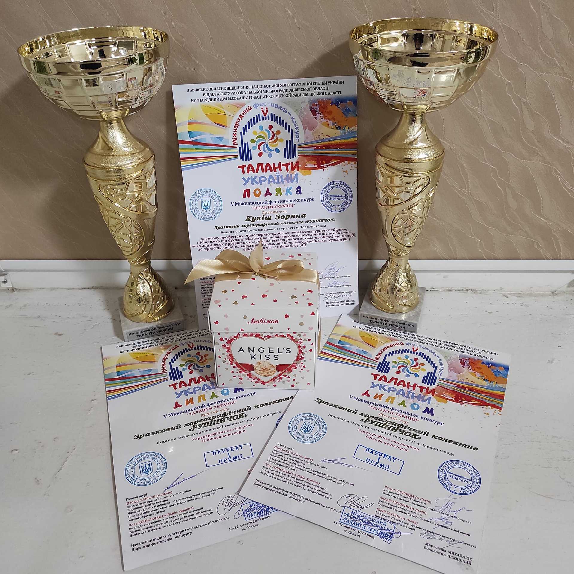I та II вікові категорії зразкового хореографічного колективу "Рушничок" (керівник Зоряна Куліш), стали лауреатами перших премій на V Міжнародному фестивалі - конкурсі "Таланти України" м.Сокаль.