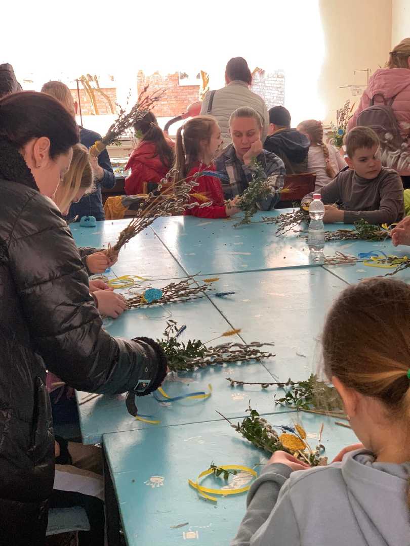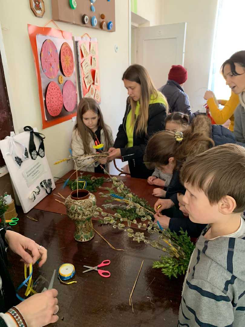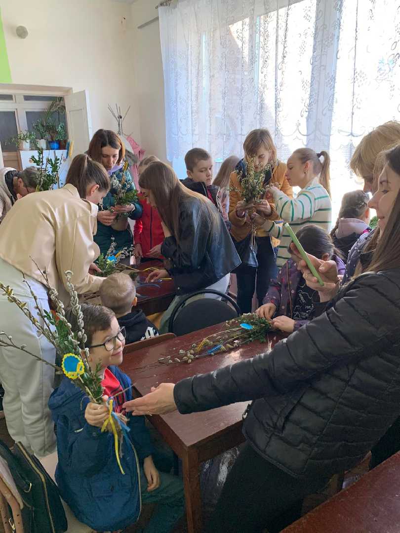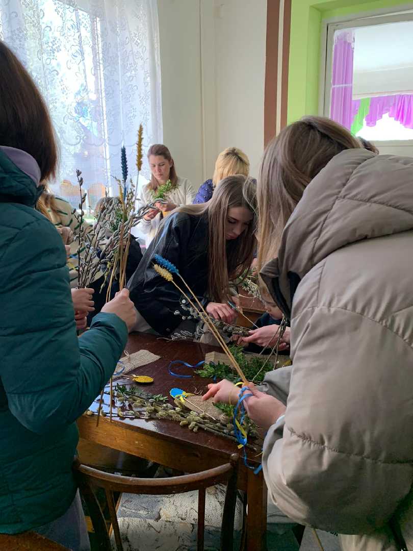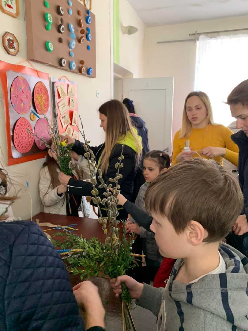 Під керівництвом наших майстринь Мирослава Яремчук та Василина Петролюк відбувся майстер-клас для осіб, які тимчасово покинули свої домівки, де вони навчились робити красиві композиції з вербових гілочок. Також учасники мали можливість дізнатись багато нового і цікавого про історію і традиції святкування Квітної неділі на наших теренах.