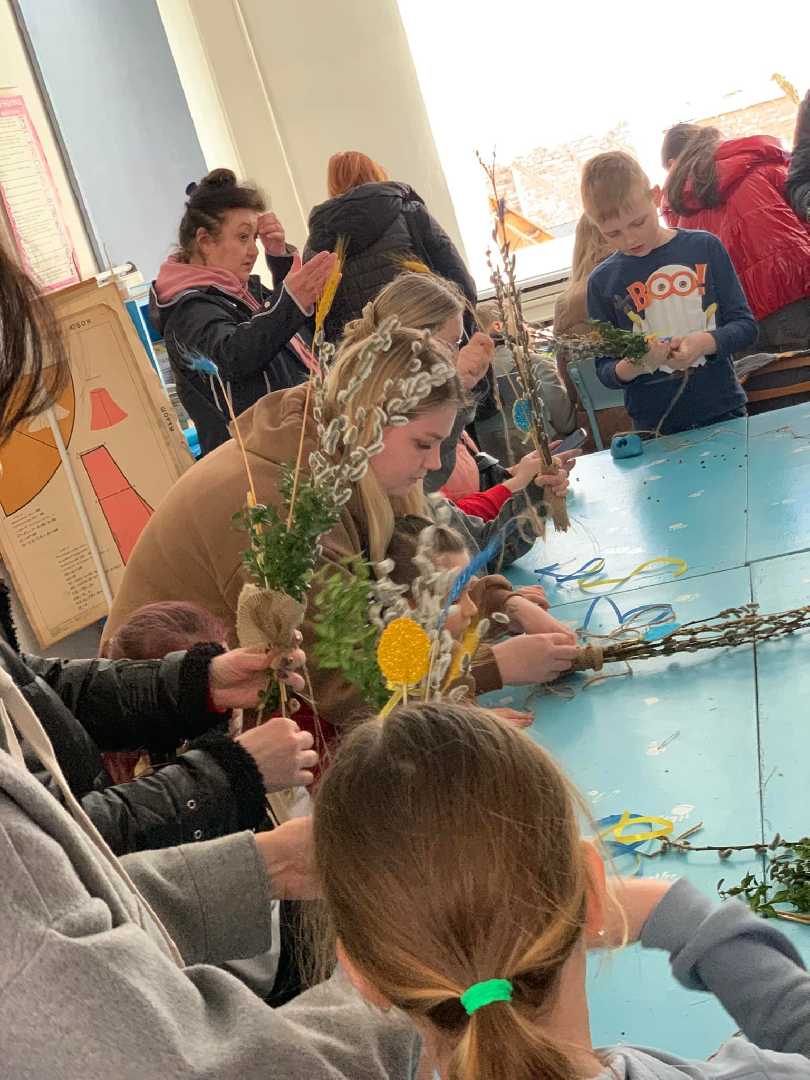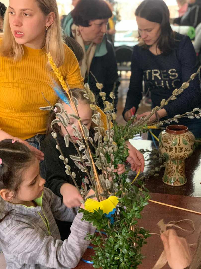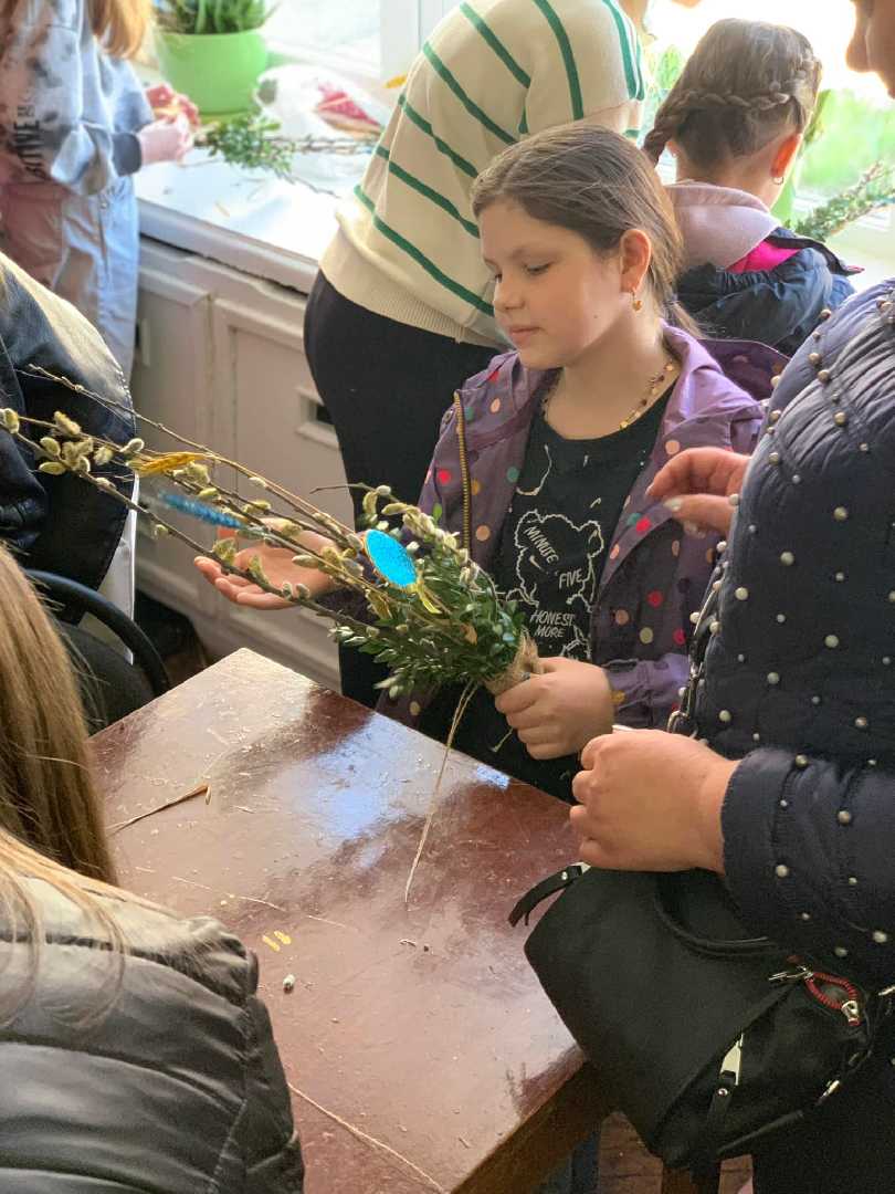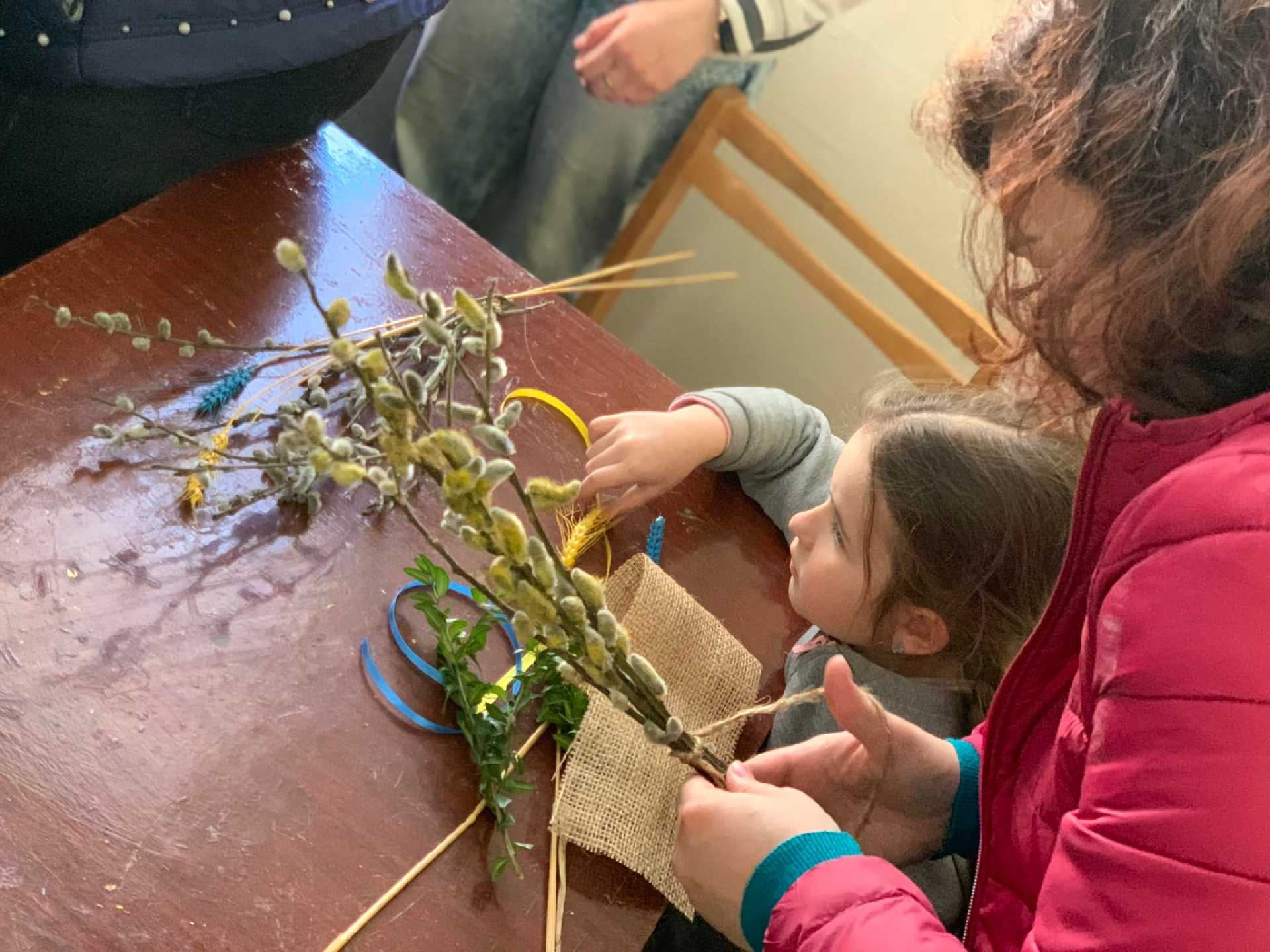 Під керівництвом наших майстринь Мирослава Яремчук та Василина Петролюк відбувся майстер-клас для осіб, які тимчасово покинули свої домівки, де вони навчились робити красиві композиції з вербових гілочок. Також учасники мали можливість дізнатись багато нового і цікавого про історію і традиції святкування Квітної неділі на наших теренах.