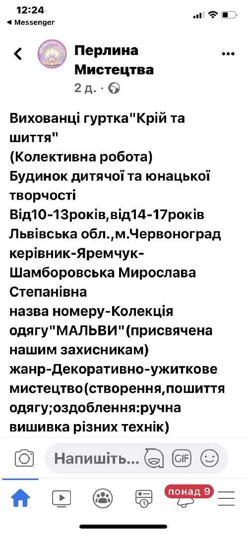 Вихованці гуртка «Крій та шиття» (керівник Мирослава Яремчук-Шамборовська),