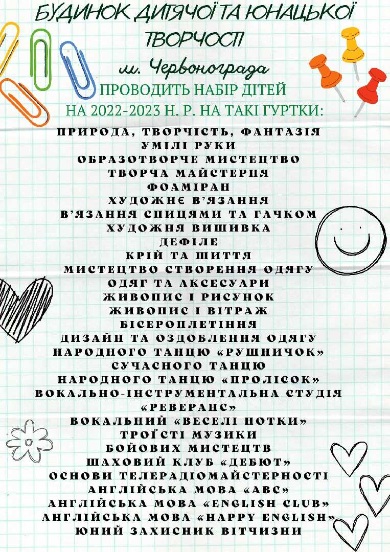 Про зарахування вихованців до гуртків
