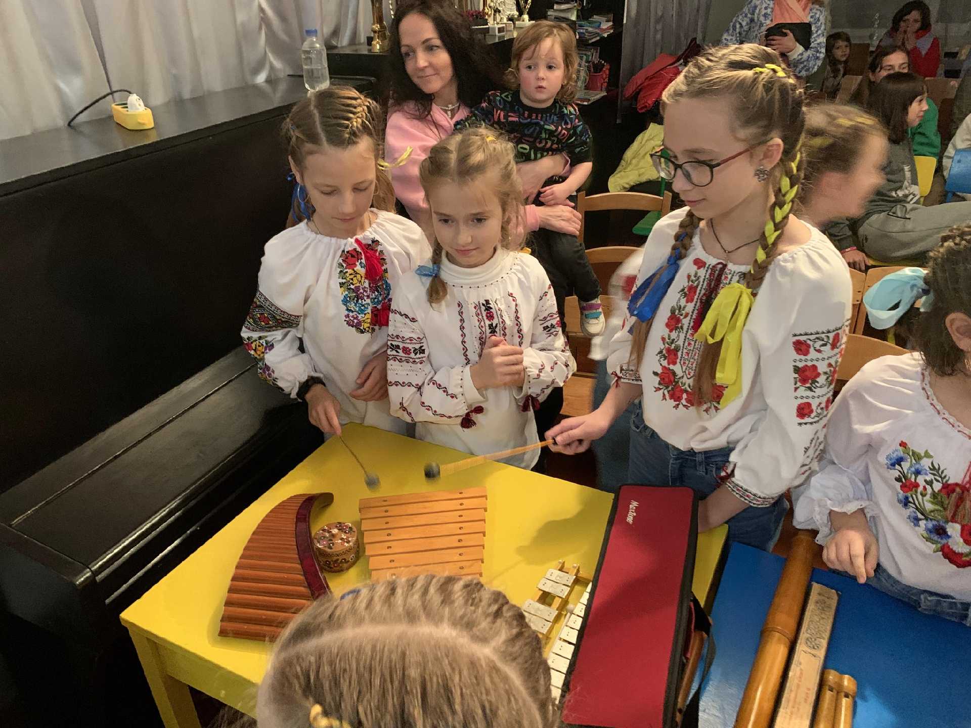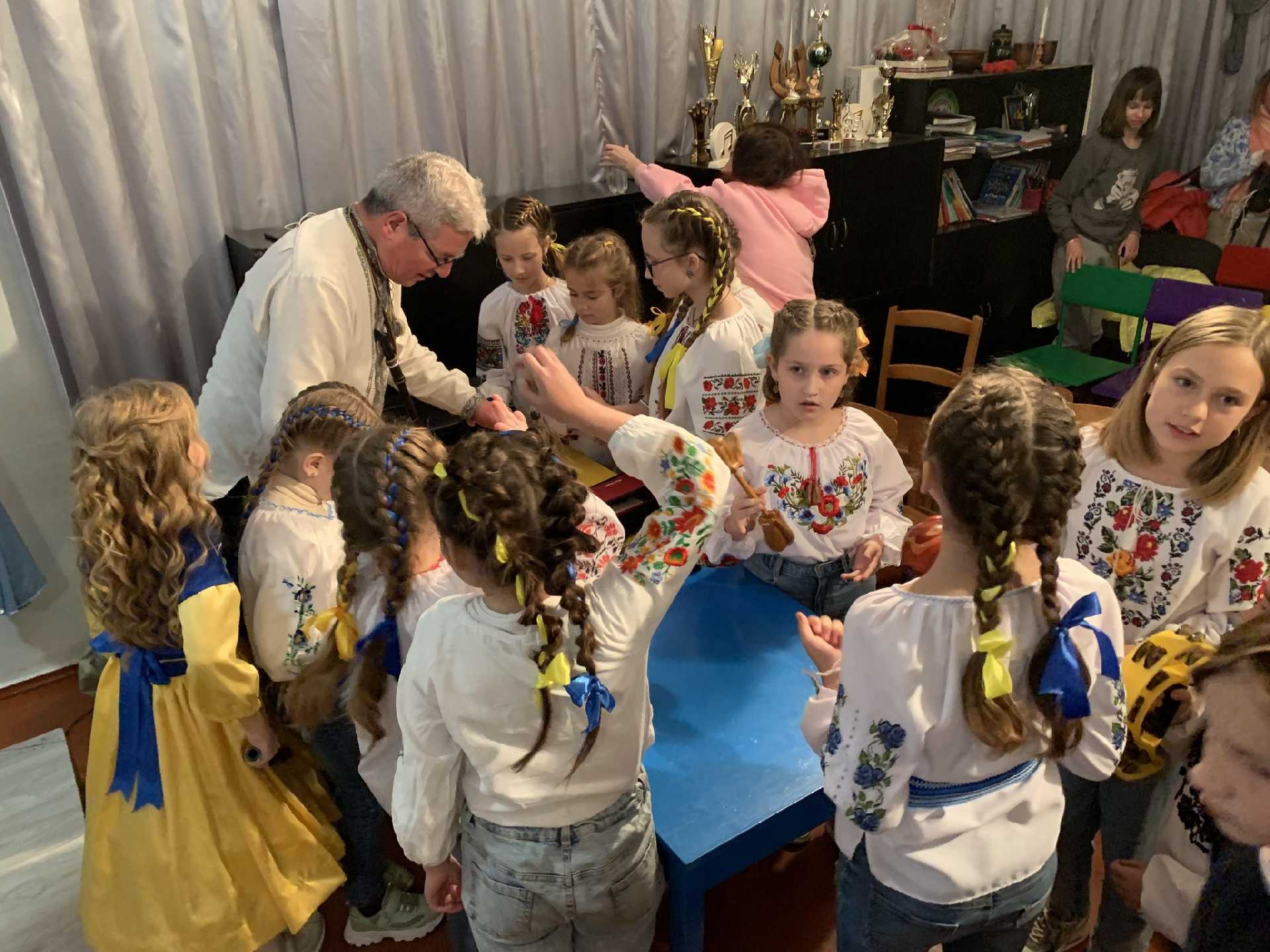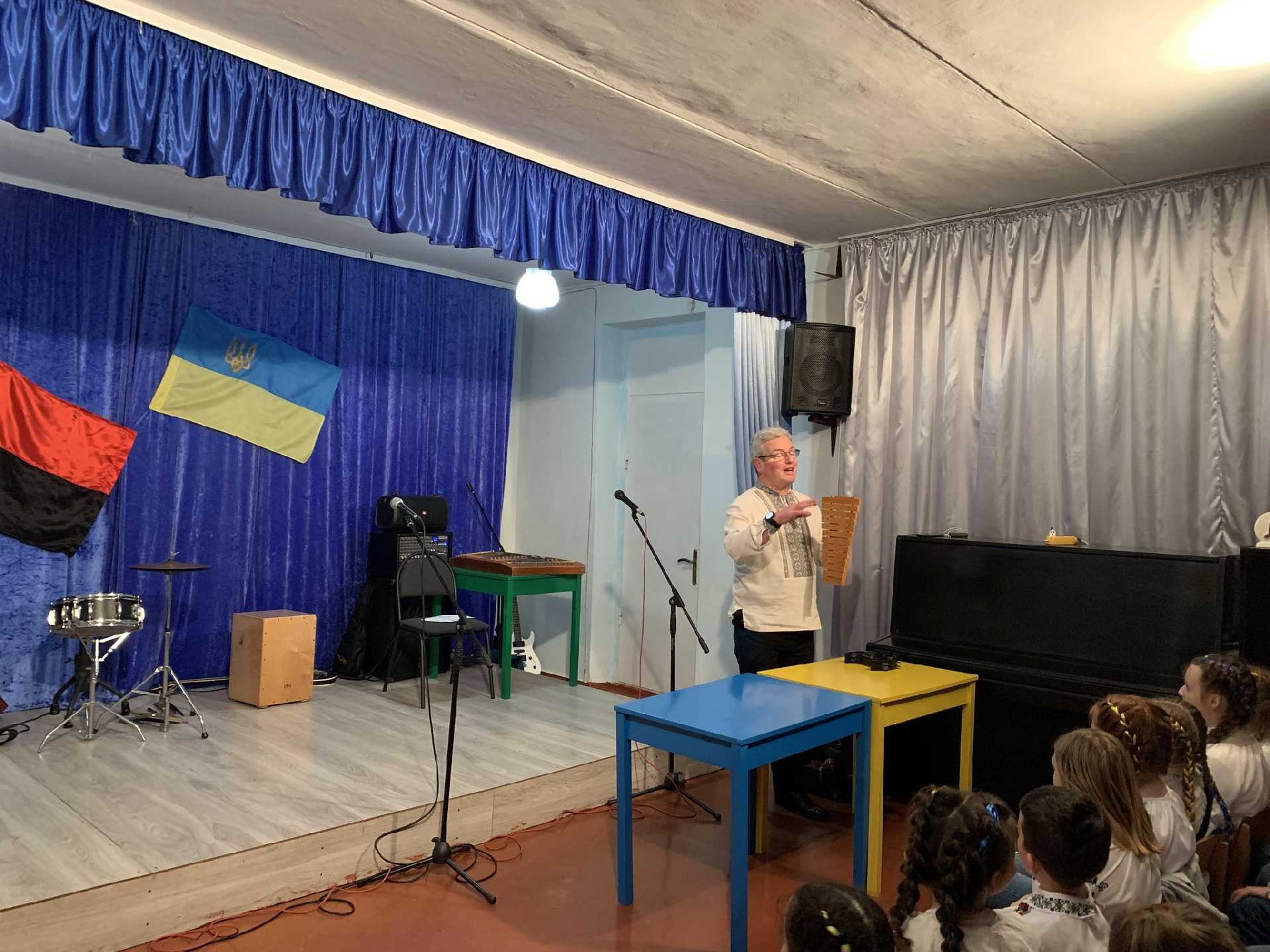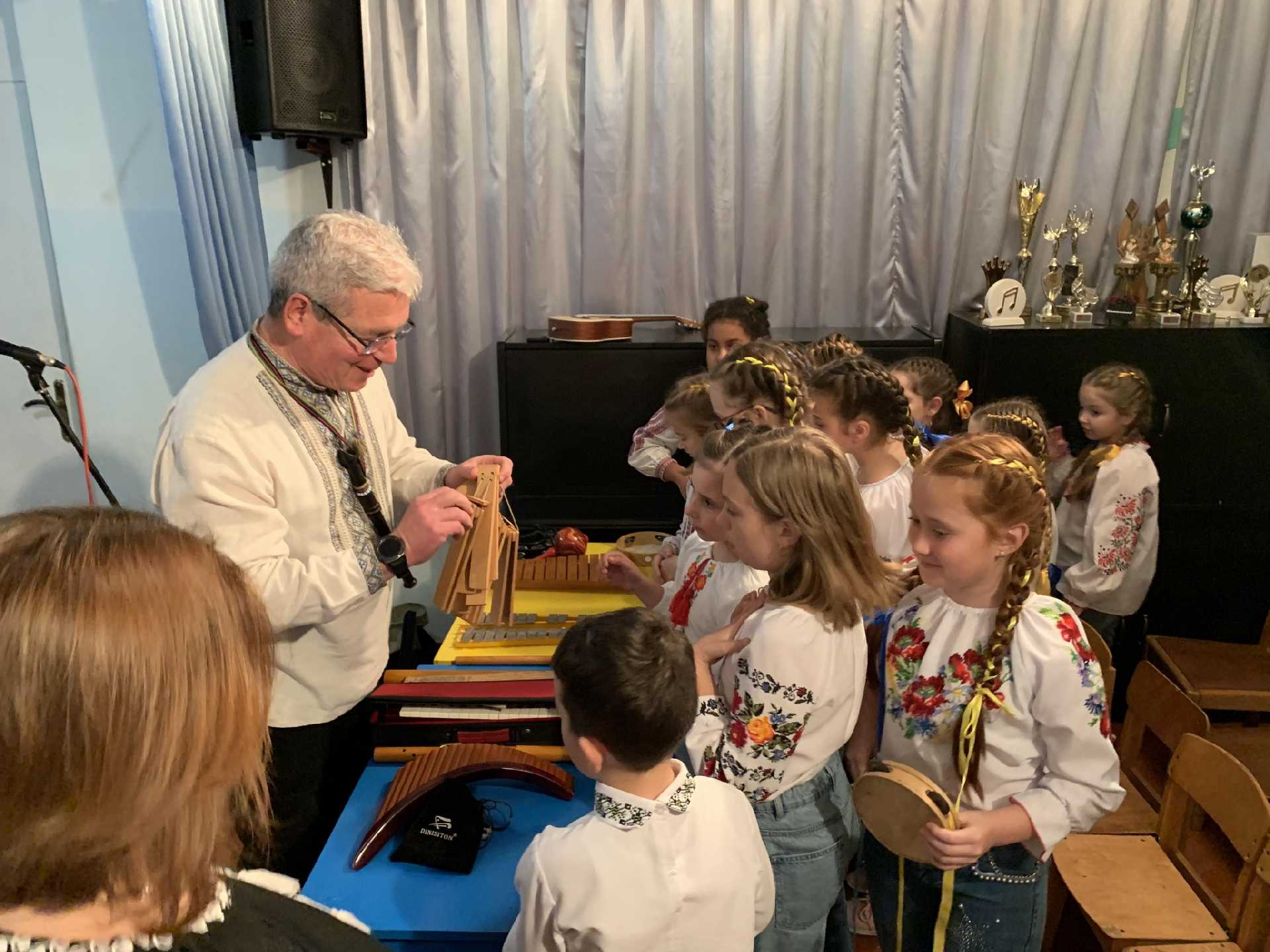 Під час музично-патріотичної зустрічі, яка відбулася у нашому закладі, керівник вокально-інструментального колективу "Троїсті музики" Валерій Чобонян провів майстер-клас по грі на автентичних народних музичних інструментах. Згодом всі бажаючи змогли попробувати себе у ролі музиканта.