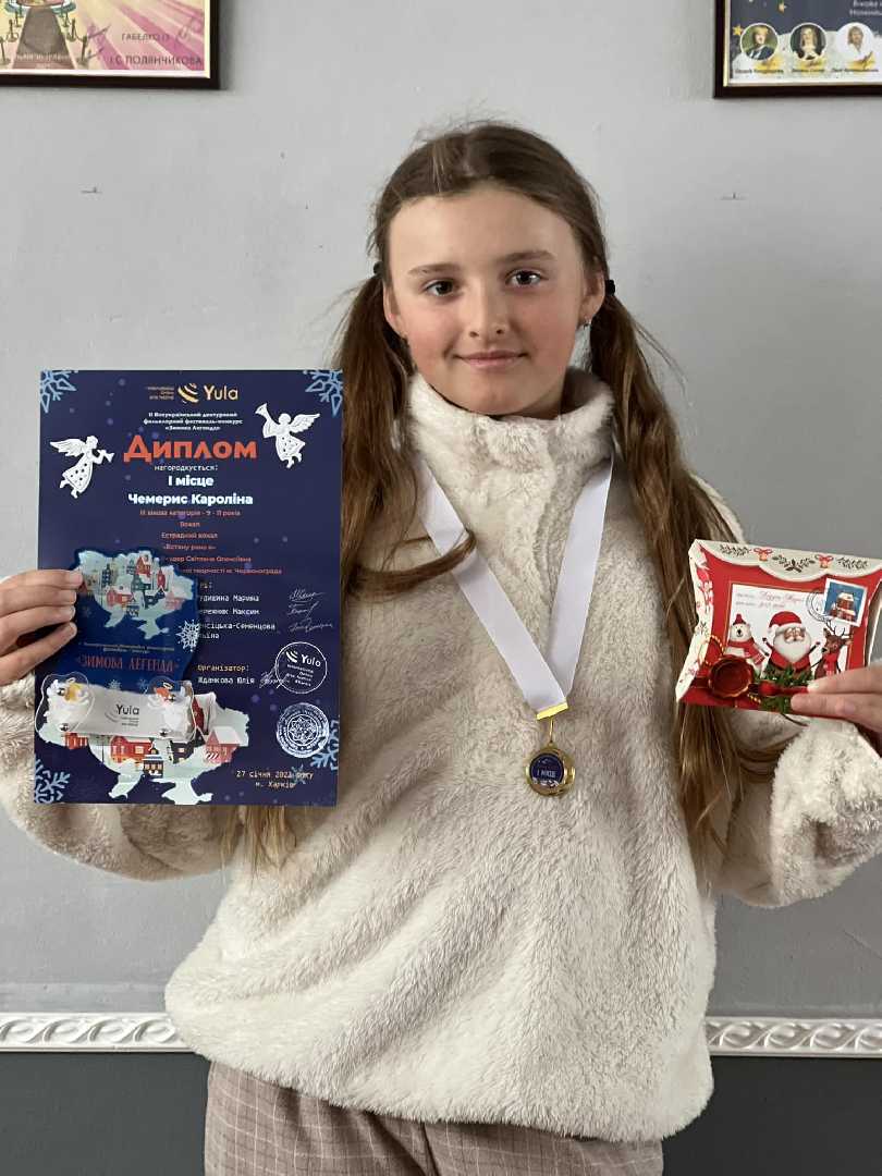 Вітаємо Кароліну Чемерис з перемогою у II Всеукраїнському конкурсі "Зимова Легенда". Дякуємо "Юла Арт Фестиваль" за високу оцінку нашої праці. Керівник Світлана Шкудор.
