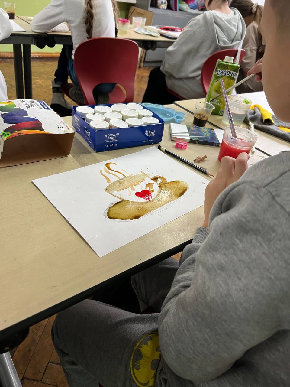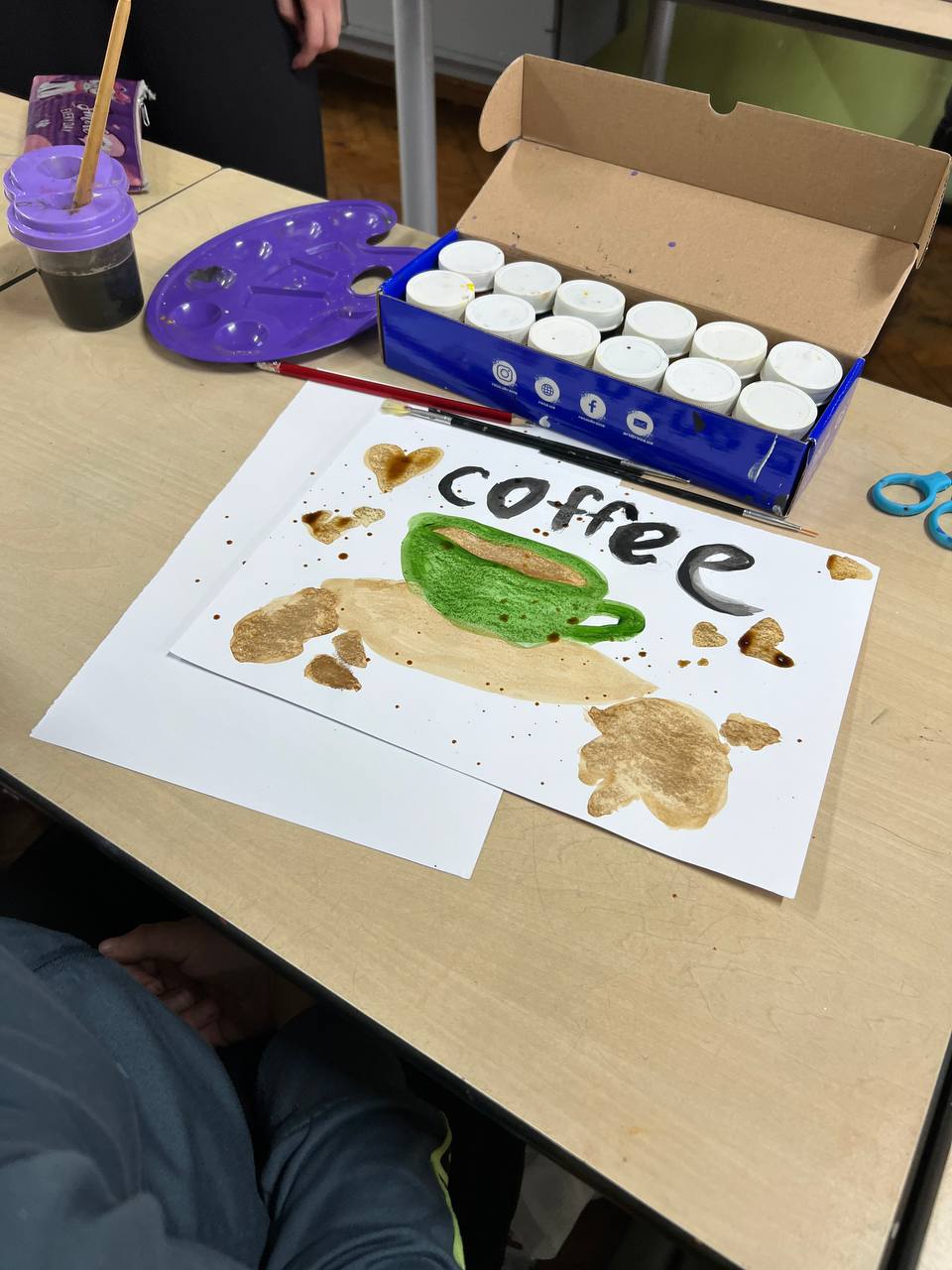 Процес малювання кавовими відтінками виявився не тільки творчим, але й заспокійливим — справжня арт-терапія для душі. Кожна дитина змогла виплеснути свої емоції на папір, створюючи щось особливе та неповторне. Малюнки вийшли такими різними: від ніжних пейзажів до абстрактних візерунків, але кожен з них передавав атмосферу затишку й тепла.