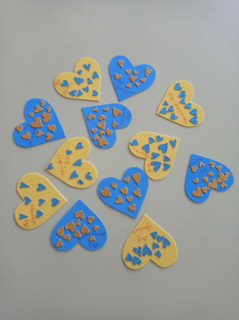 У перший день нового навчального року ми дякуємо захисникам за наш спокій і виготовили їм обереги - сердечка. Інклюзивна група середнього дошкільного віку № 3. Вихователь: Оксана Креховець. Асистент вихователя: Галина Якимів.