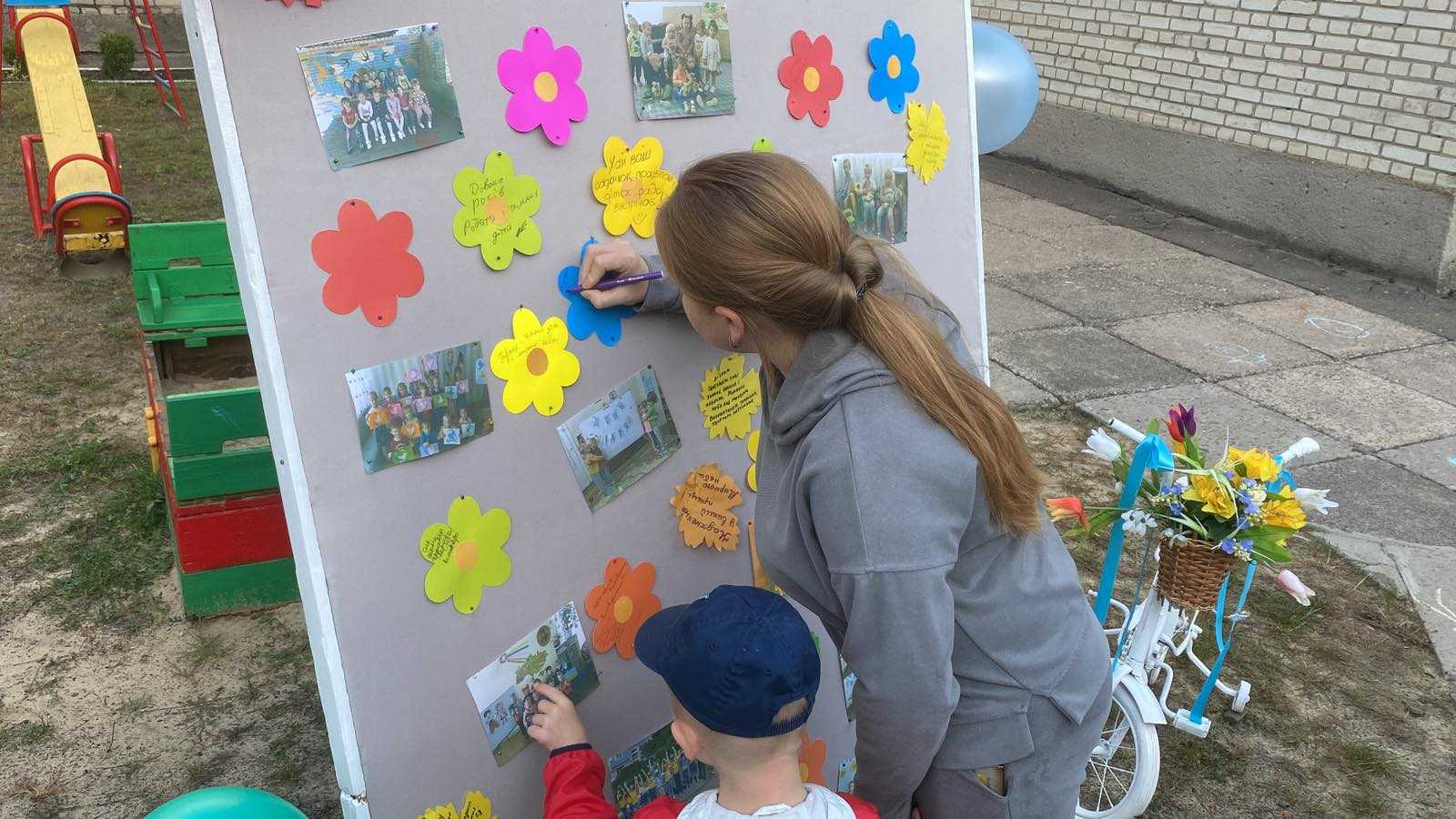 Біля входу в дитячий садок малят та їх батькфв чекала барвиста фотозона, на якій поряд із світлинами мами і тати залишали свої побажання.