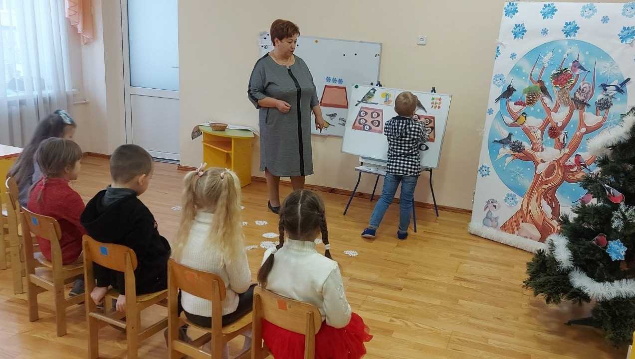 Вчитель-логопед Людмила Миколаївна Низовець провела з вихованцями групи "Теремок" підсумкове заняття на тему "Зимуючі птахи". Метою заняття було закріпити знання дітей про зимуючих птахів нашої місцевості. Розвиток мовленнєвого та фізіологічного дихання, діалогічного мовлення, фонематичних процесів, зорової уваги та сприймання, мислення, артикуляційної, дрібної та загальної моторики. Формування навичок самостійності. Виховання любові та бережливого ставлення до природи, бажання допомагати птахам.