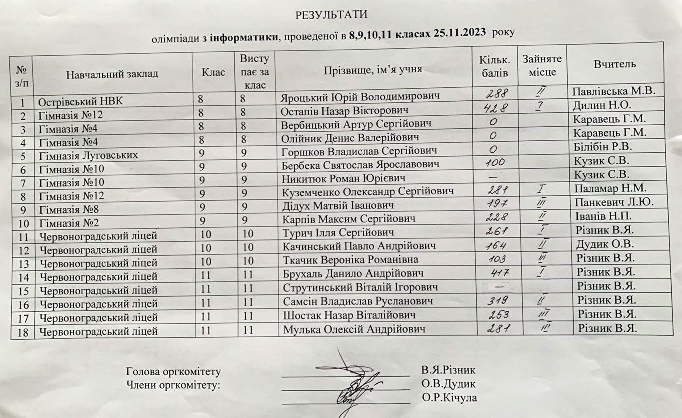 Результати I туру II етапу олімпіади з інформатики 2023 рік