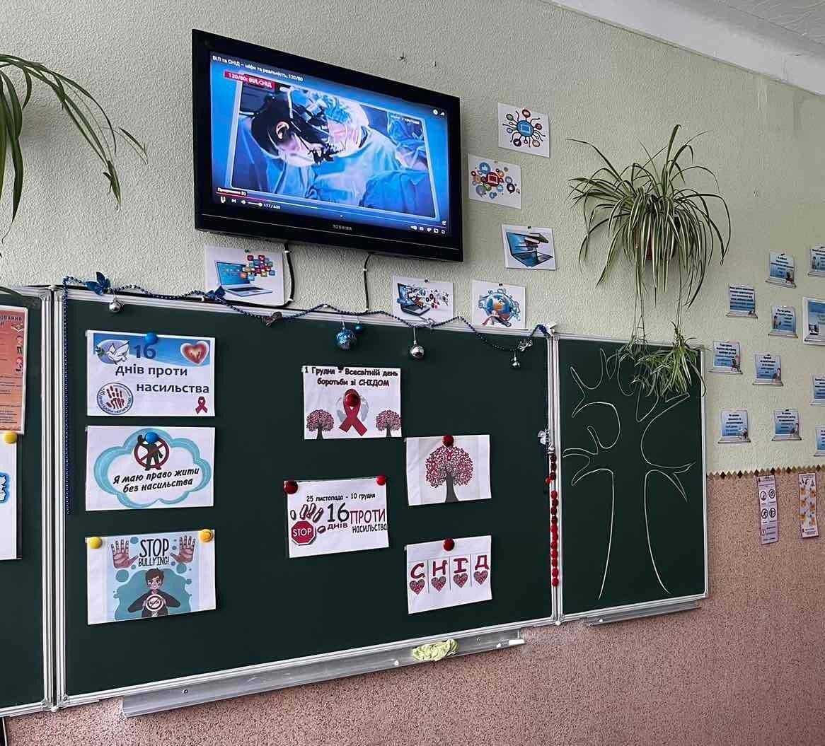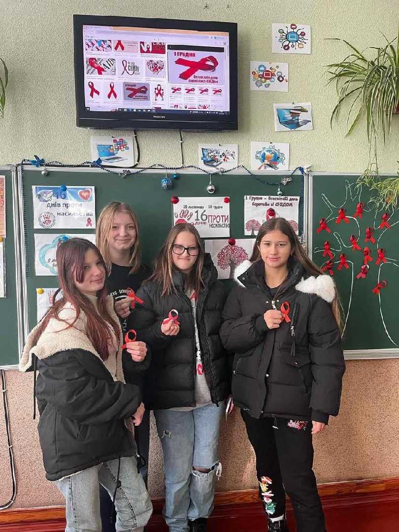 Щорічно 1 грудня відзначається Всесвітній день боротьби зі СНІДом. Народи у всьому світі об'єднуються для демонстрації підтримки людей,що живуть з ВІЛ, та згадують тих, хто помер від пов'язаних зі СНІДом. Учні 8-В класу із кл. кер. Оленою Бойко провели годину відвертого спілкування "СНІД:подумай про майбутнє і обери життя". Школярі переглянули тематичний соціальний відеоролик, поновили знання про СНІД та ВІЛ-інфекцію,шляхи зараження і групи ризику.