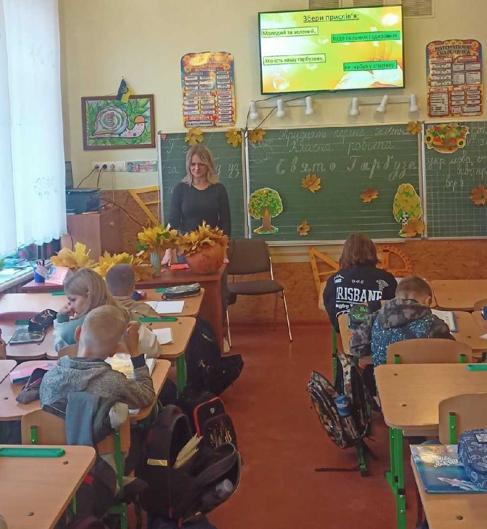 Так, саме цією піснею учні 4-В класу розпочали" День гарбуза по-українськи." Пригадали всіх РОДИЧІВ ГАРБУЗОВИХ, дізнались цікаву інформацію, добирали асоціації, створювали хмару слів, говорили про користь, описували, складали речення, а ще, повернулися на мить в той час, коли люди відкрили для себе гарбуз, як продукт, що має безліч корисних властивостей.