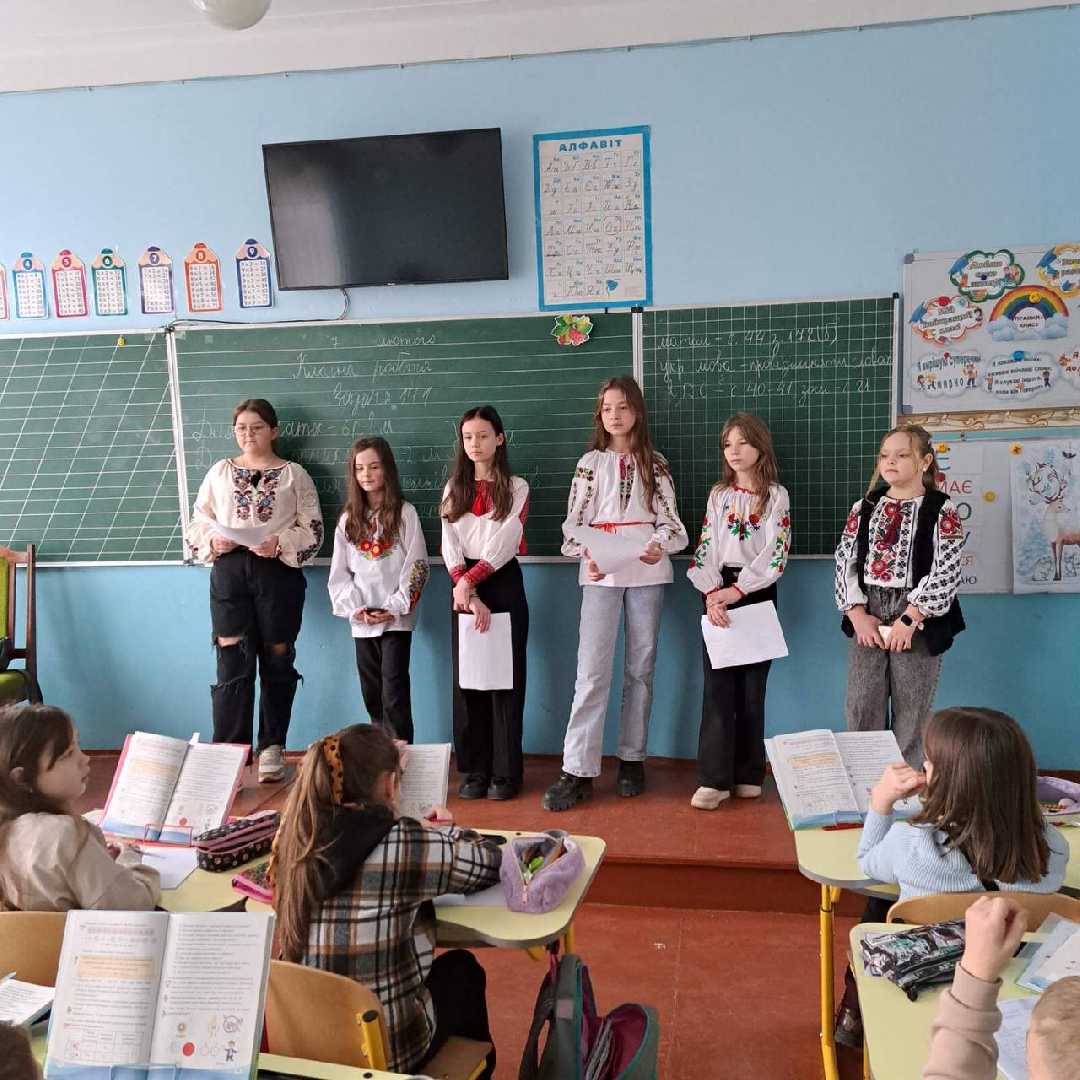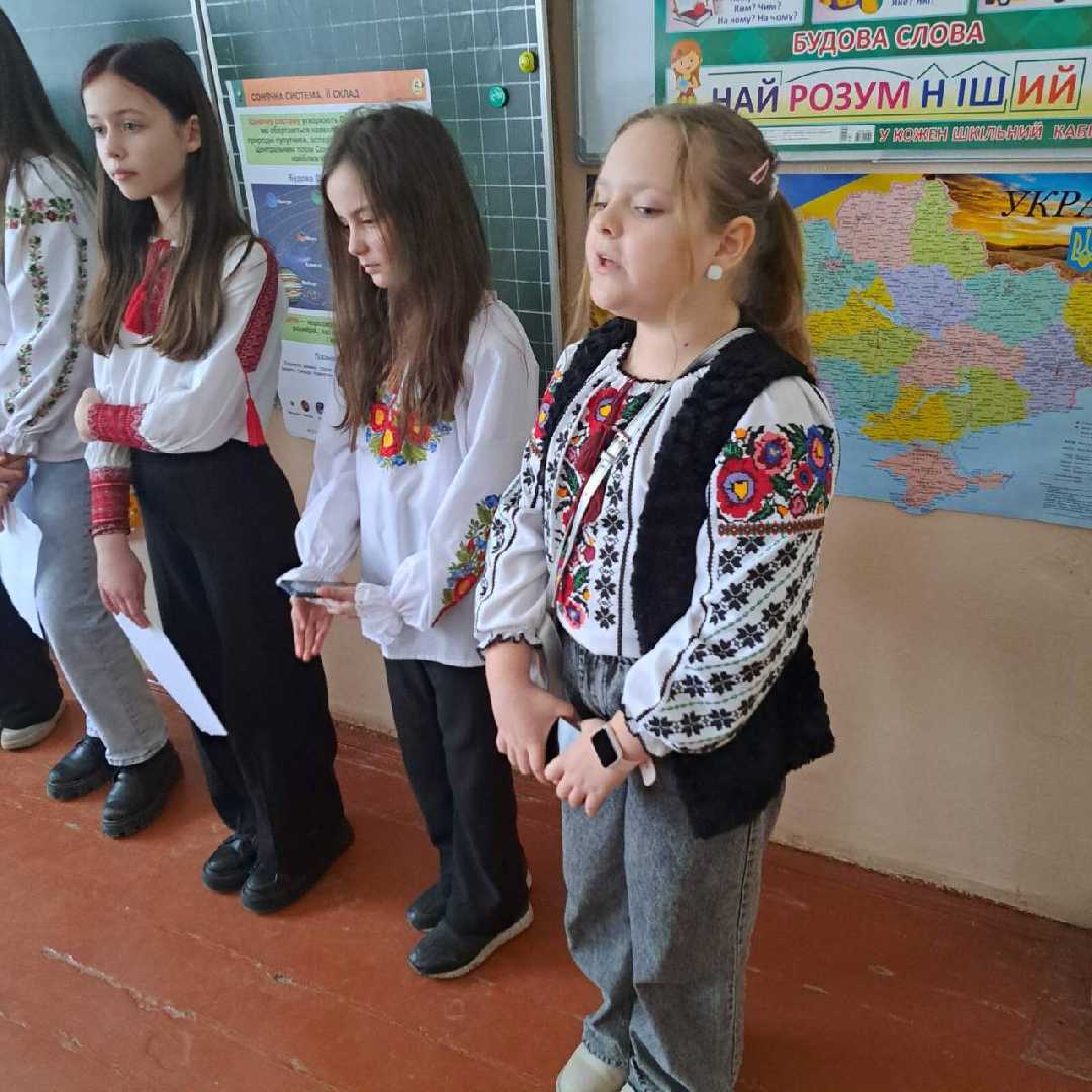 З такими словами учні 5-В та 6-А завітали до гімназистів початкової школи. Школярики почули цікаві факти про українську мову, розгадувати кросворди, читали поезії. Лемех Анастасія учениця 5-В класу прочитала поезію «Україна - країна героїв», яку написала її мама