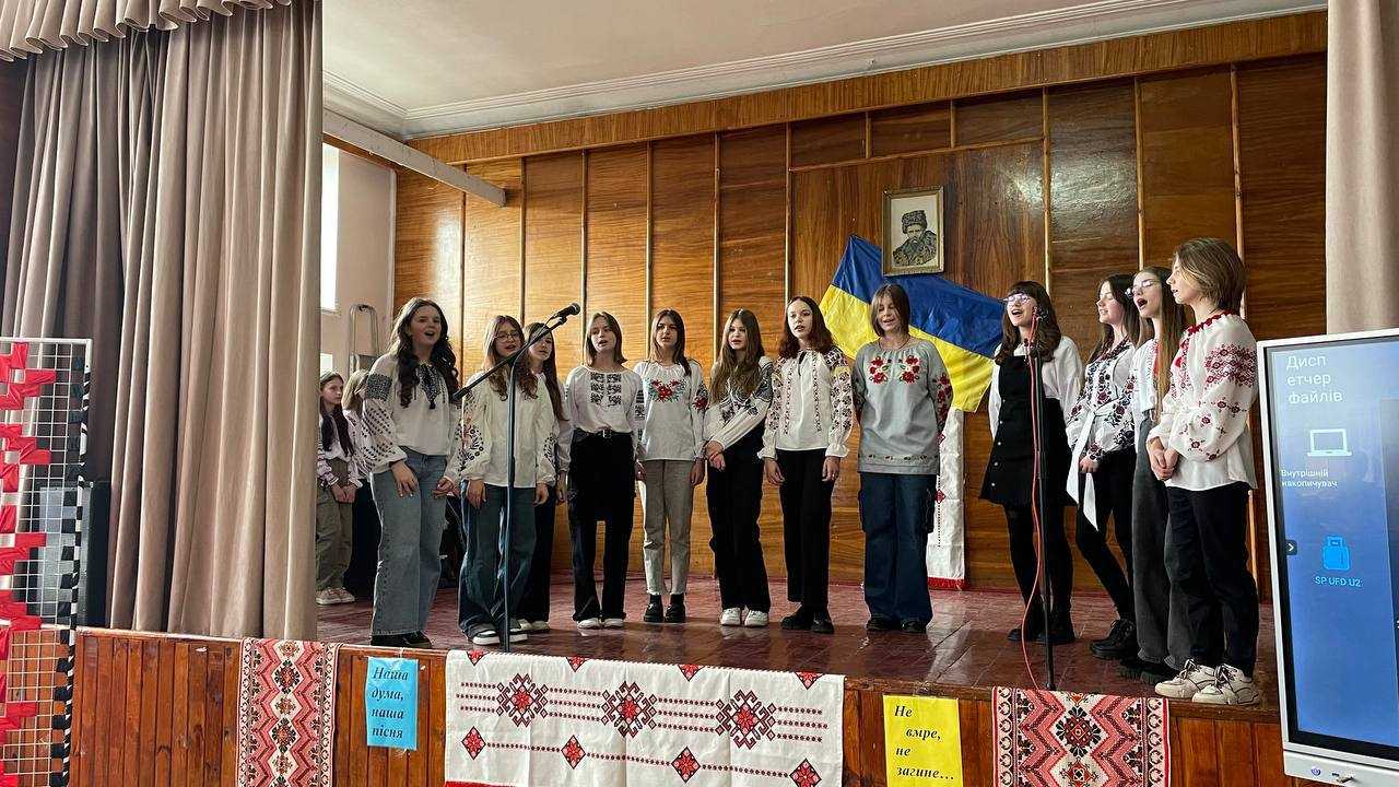 У заході взяли участь учні 5-В, 6-А,7-А, 9-А, 9-В класів разом із вчителем української мови Юристовська Н.Б. та вчителем музичного мистецтва Філософ М.Я.
