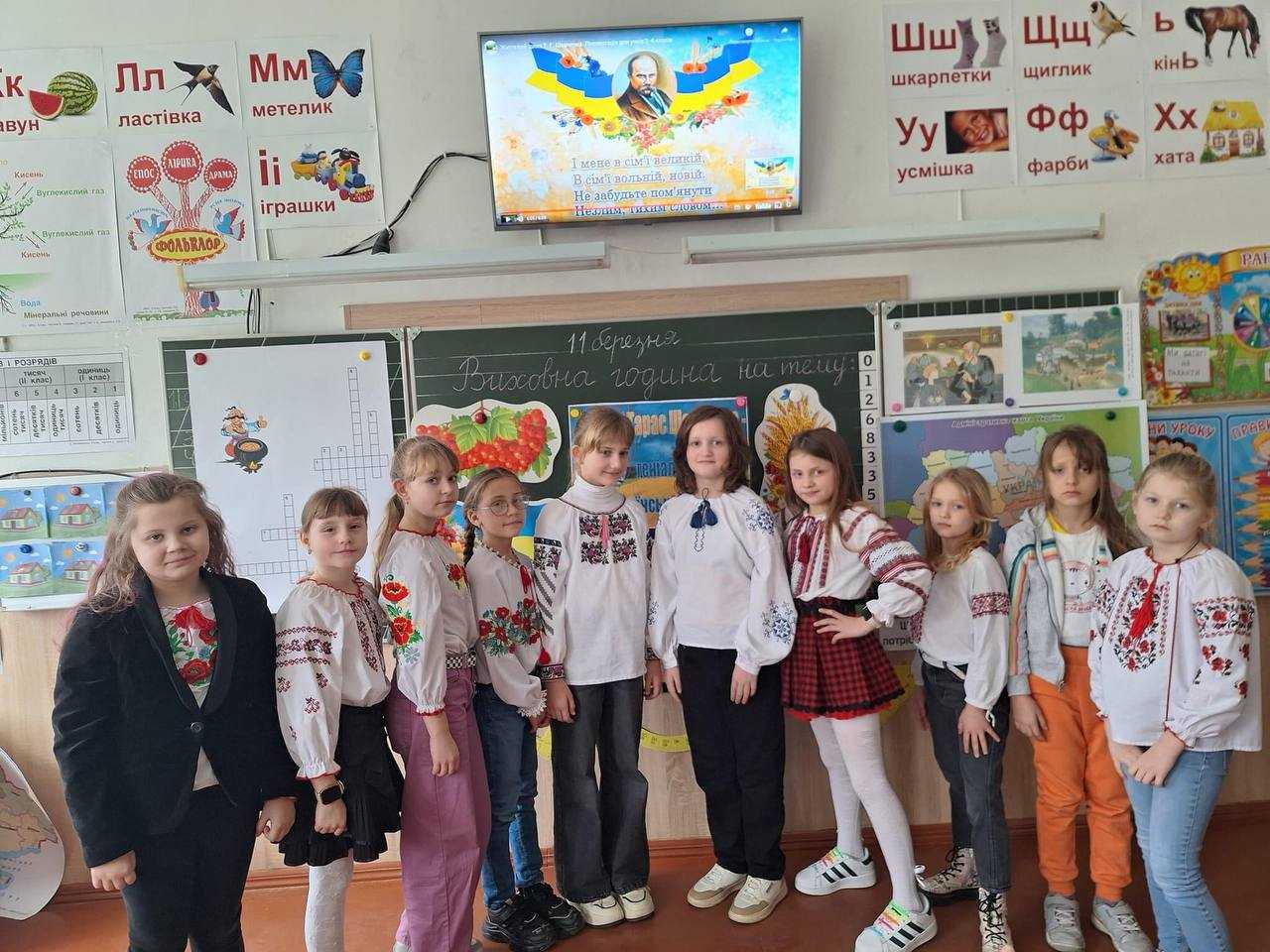 • Виховна година у 3 - А класі присвячена 210 - річниці з дня народження геніального сина українського народу. Учні переглянули презентацію "Життєвий шлях Т. Г. Шевченка" , розгадали кросворд "Кобзар", взяли участь у вікторині "Чи знаю я твори Шевченка ?" конкурсі читців шевченкових поезій та експрес - опитуванні (технологія "Незакінчене речення").А ще діти творчо попрацювали у групах - створили лепбуки "Наш Тарас".