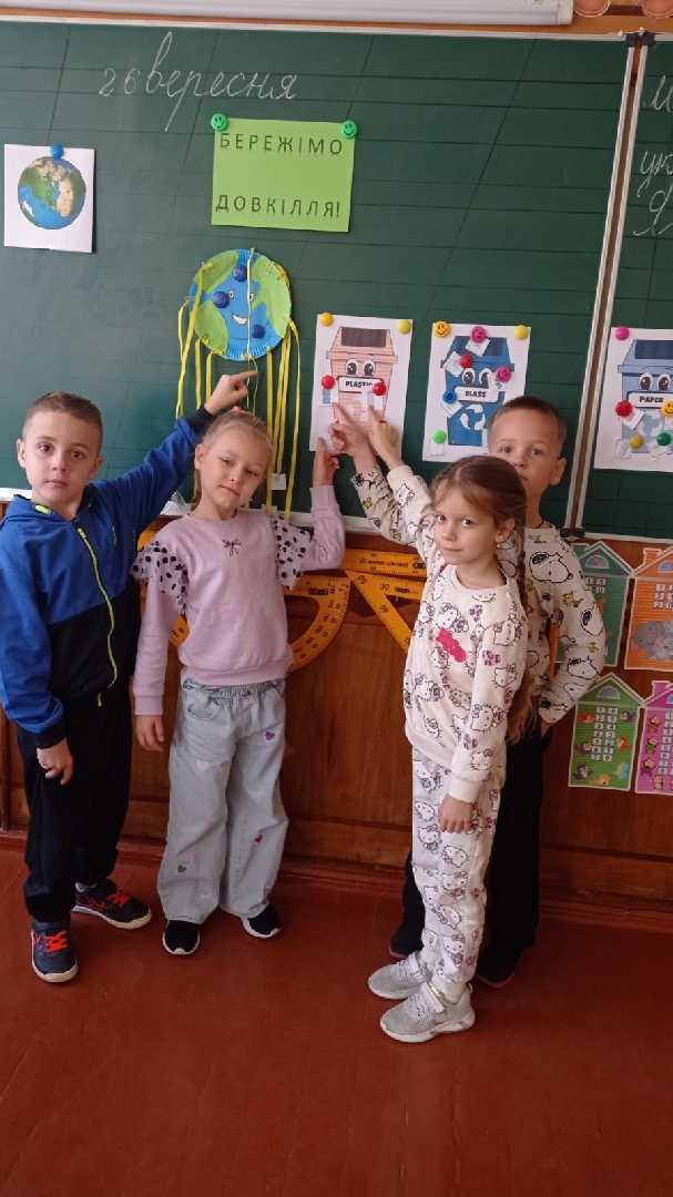 Сьогодні учні 1-б класу під керівництвом учительки Оксани Мінькач вчилися дбати про чистоту на планеті Земля.
