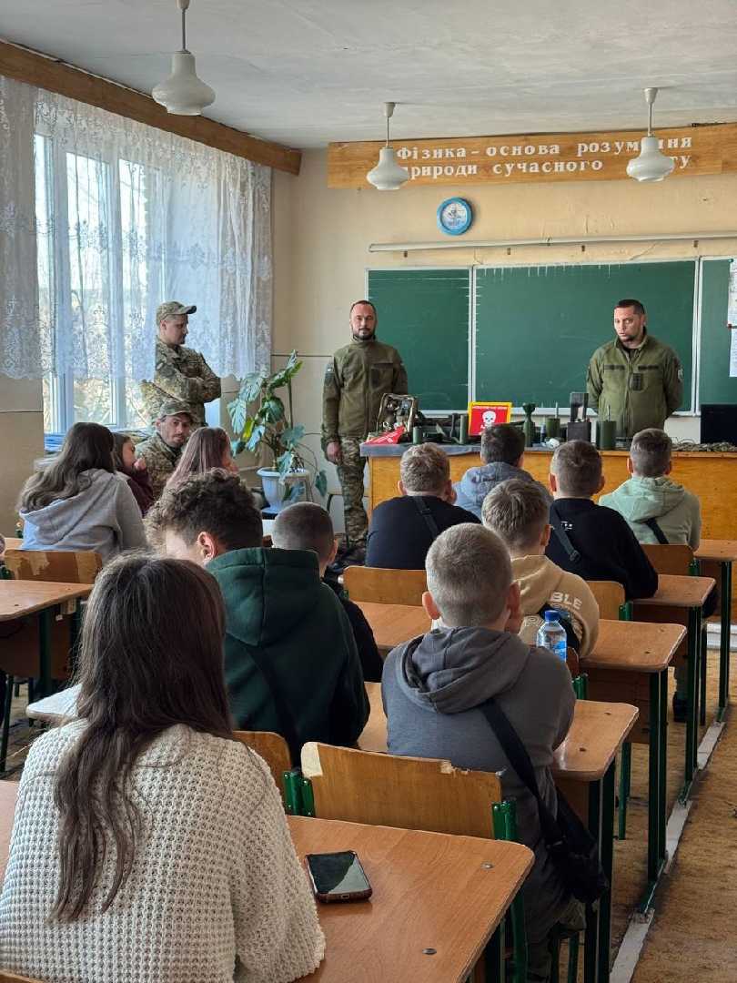 Військові показали навчальні зразки, продемонстрували роботу дрона, розповіли про правила поведінки у разі виявлення небезпечних предметів та наголосили, як важливо бути уважним і відповідальним.