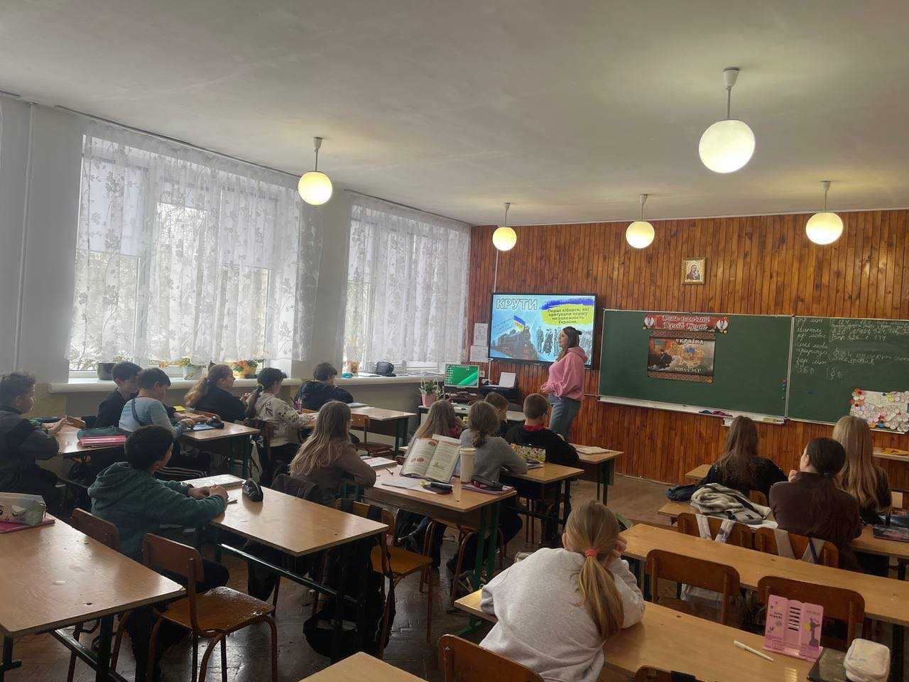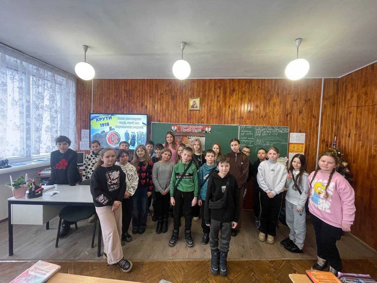29 січня, у День пам’яті Героїв Крут, у 5-А та 5-Б класах відбулися уроки пам’яті, присвячені юним студентам і гімназистам, які 1918 року стали на захист України. Учні дізналися про їхній подвиг, обговорювали мужність, відповідальність і важливість свободи для кожного покоління.