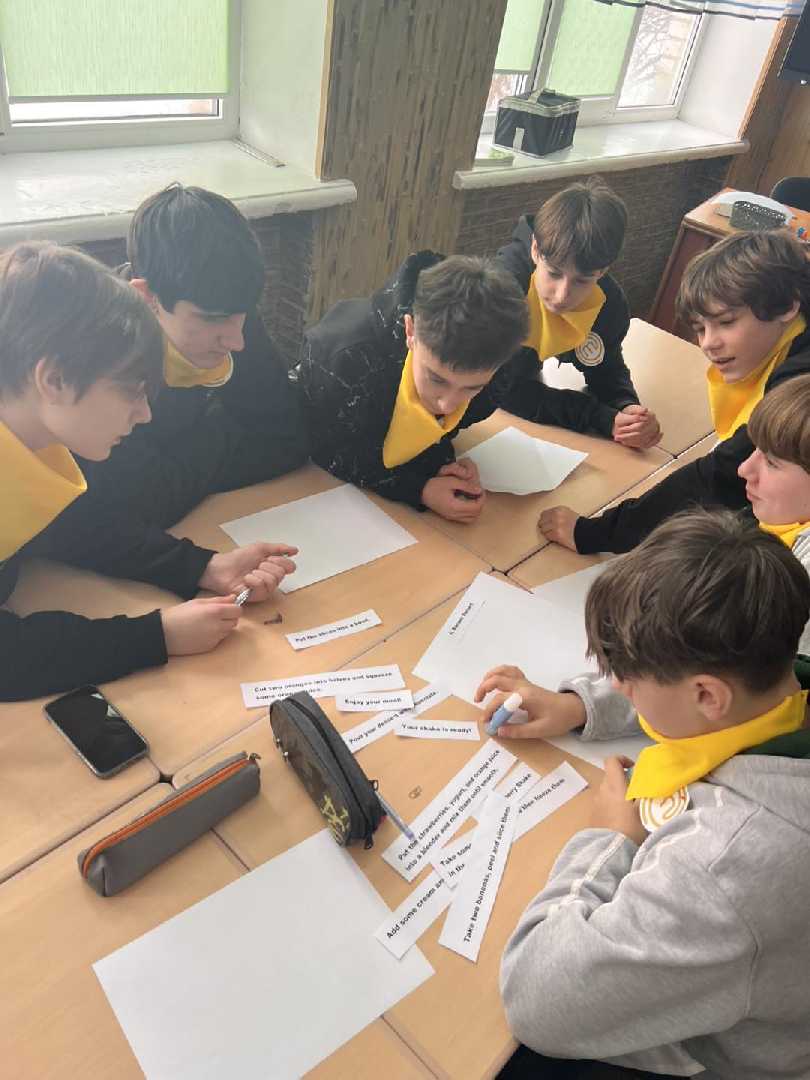 Під час уроку школярі змагалися у складі двох команд за звання авторів найкращого рецепта страви. Учні створювали власні проєкти, презентували їх англійською мовою, аргументували свій вибір інгредієнтів та креативно підходили до виконання завдань. Атмосфера уроку нагадувала справжнє кулінарне шоу, де кожен учасник мав змогу відчути себе шеф-кухарем і зіркою програми