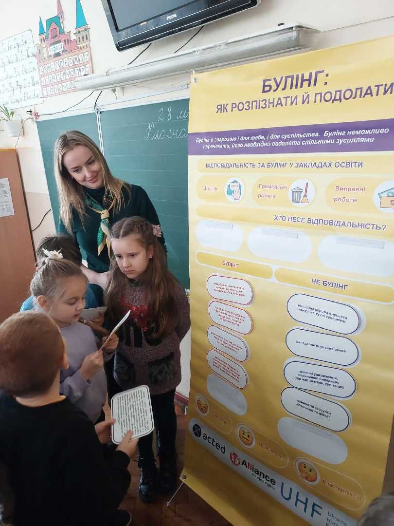 Сьогодні Христина Чемерис та Оксана Котик, психологи з Центру життєстійкості, провели інтерактивний захід для дітей, присвячений темі булінгу, добрих вчинків і правил дружньої поведінки. Під час зустрічі учні мали змогу поговорити про те, що таке булінг, як розпізнати його прояв та як правильно реагувати у складних ситуаціях. Особлива увага була приділена темі дружби. Учасники дізналися, як будувати здорові відносини з однолітками та чому важливо поважати думку інших. Через ігрові завдання та практичні вправи діти засвоювали важливі життєві правила: як допомагати друзям, вирішувати конфлікти мирним шляхом і поширювати добрі вчинки у своєму оточенні.