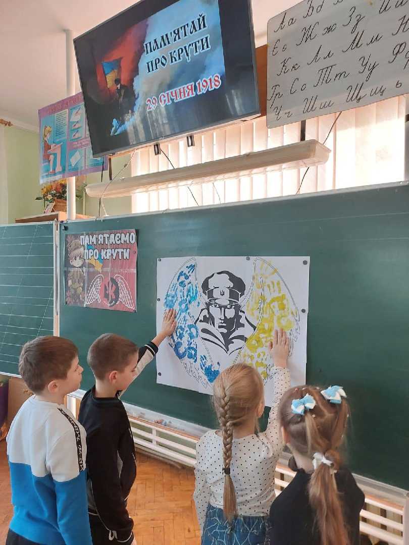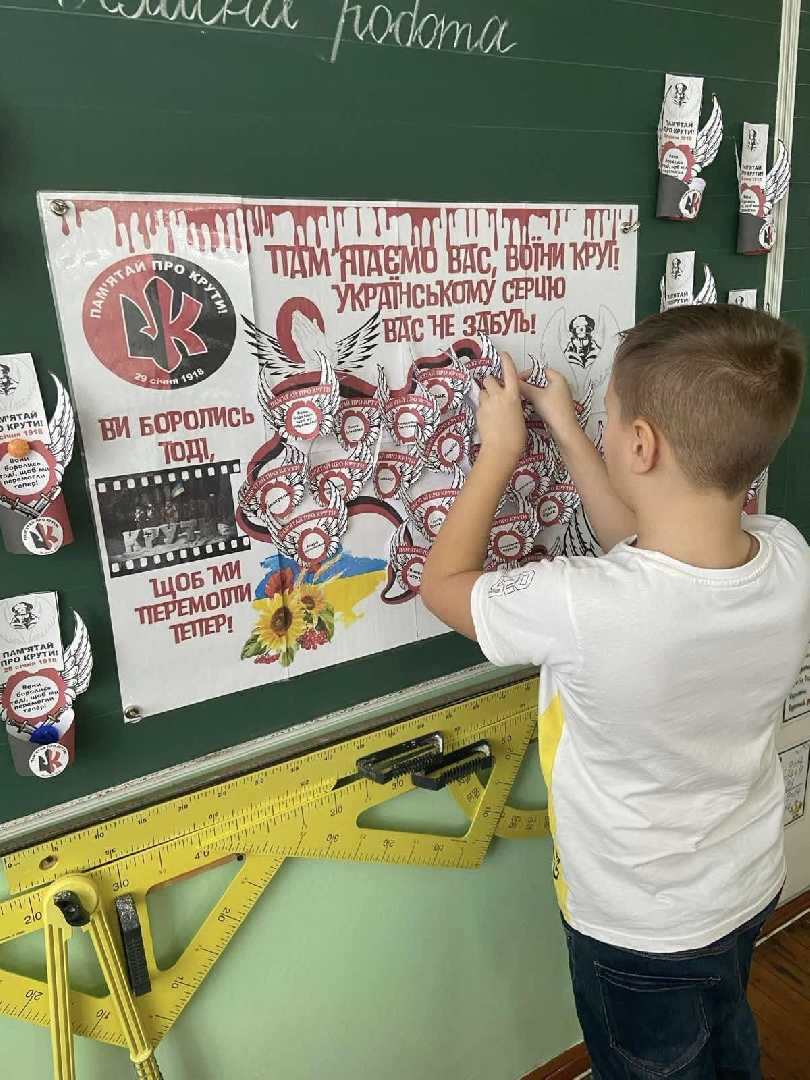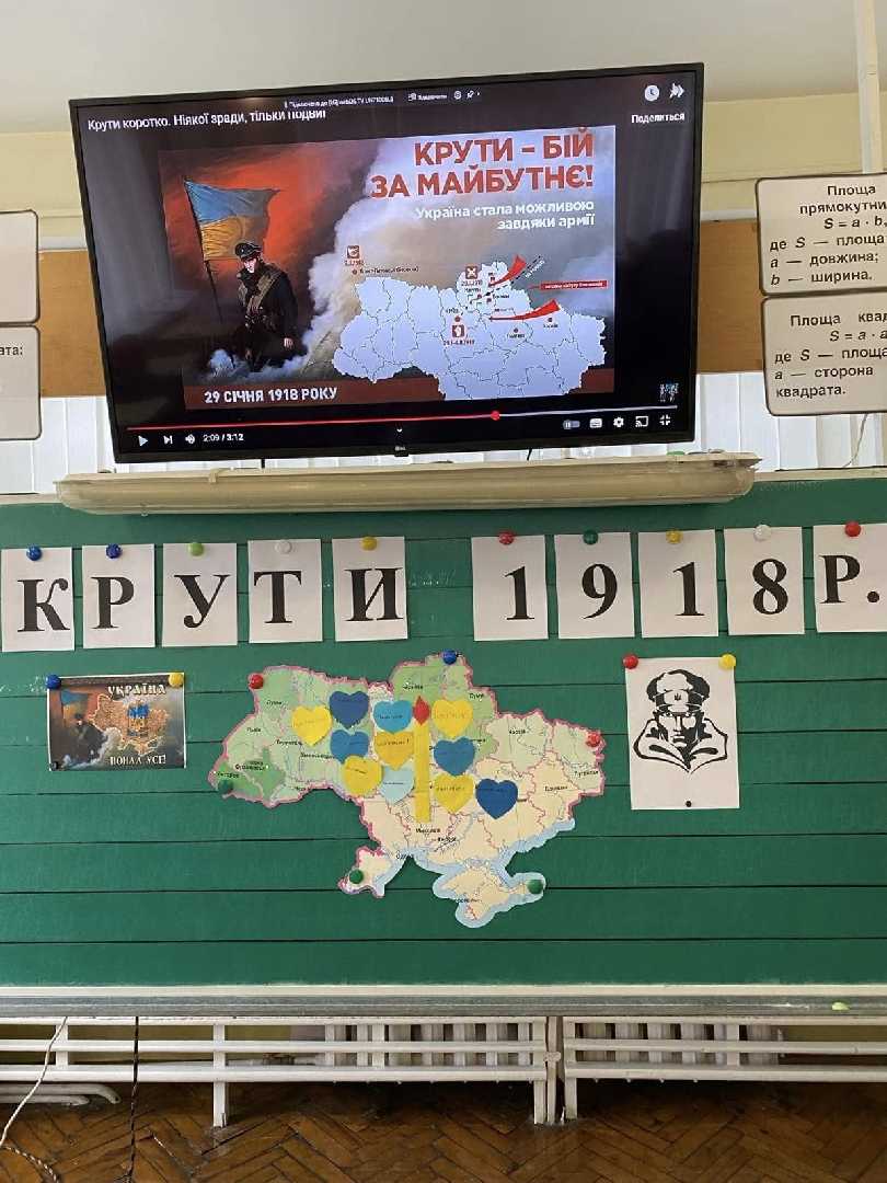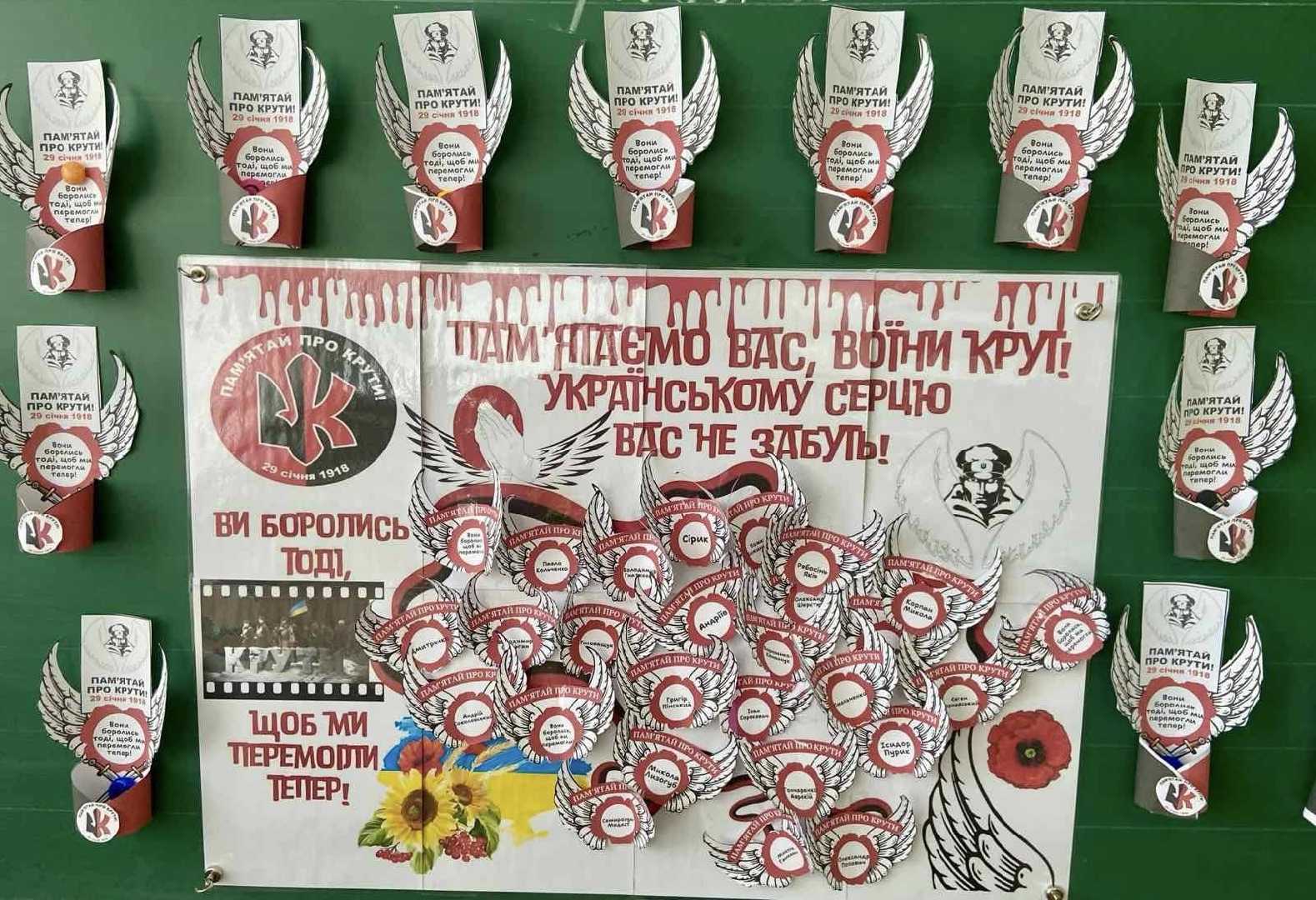 #КРУТИ_СИМВОЛ_ВІДВАГИ_ТА_НЕЗЛАМНОСТІ Сьогодні у нашій школі вшанували пам’ять Героїв Крут – мужніх захисників, які 29 січня 1918 року стали до бою за Україну. Вони були такими ж молодими, мріяли, навчалися, будували плани на майбутнє… Але коли постала загроза рідній землі, не вагалися – пішли захищати її. Їхній подвиг став уроком мужності для наступних поколінь. І сьогодні, коли Україна знову бореться за свою свободу, ми ще більше розуміємо, наскільки важливими були ті події. Вічна пам’ять Героям Крут! Вони житимуть у наших серцях і в нашій історії.