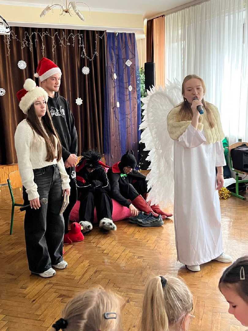 Святий_Миколай_завітав_до_наших_учнів Сьогодні в школі панувала атмосфера тепла, щирості та взаємної підтримки. До нас у гості приїхали учні Червоноградський професійний гірничо-будівельний ліцей разом зі своєю наставницею пані Лесею Рак. Вони підготували святкову програму до Дня Святого Миколая та показали дивовижну виставу, яка торкнулася кожного серця, нагадала про справжні життєві цінності й утвердила віру в силу добра. Ми щиро вдячні талановитим юним акторам за їхню старанність, творчість та вміння створити атмосферу справжнього дива. Це свято залишить теплі спогади у кожного!