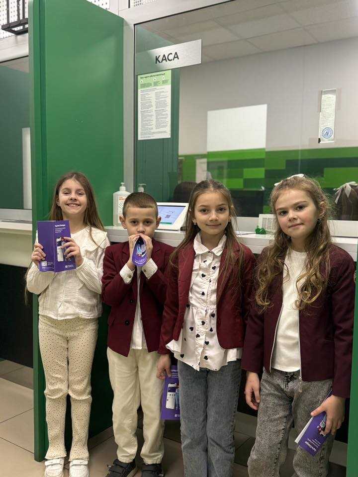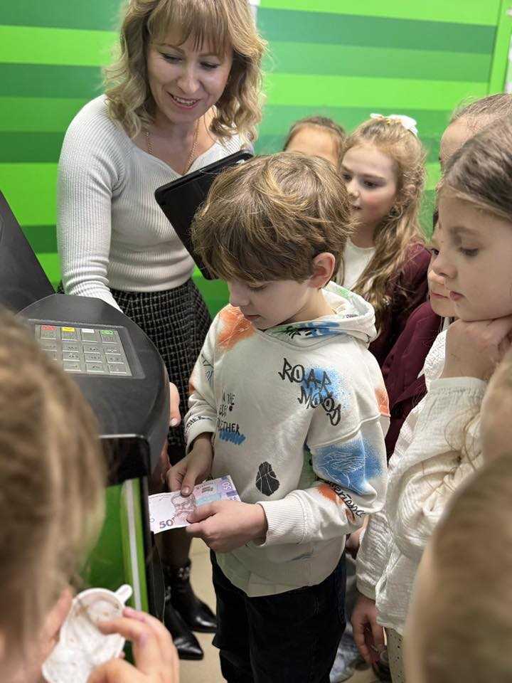 Під час зустрічі із Тетяною Стріжак, заступником директора відділення ПриватБанку, діти дізналися, як працюють банкомати, спробували користуватися терміналом, лічити гроші за допомогою спеціального обладнання, вчилися поповнювати картку. А ще ознайомилися із професіями працівників банку, побачили роботу фахівців, які щодня допомагають людям керувати фінансами.