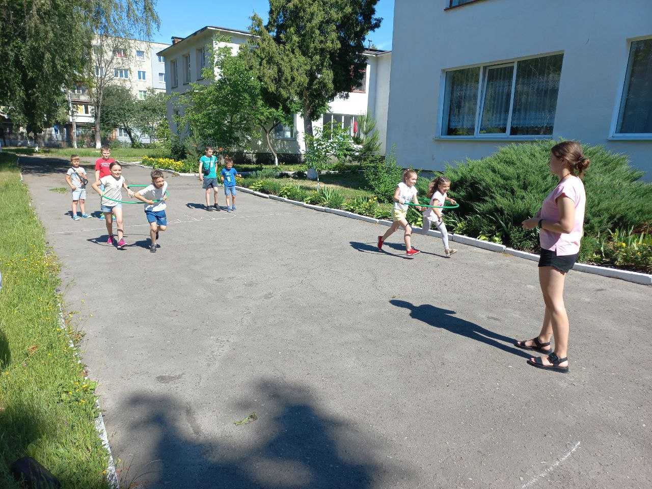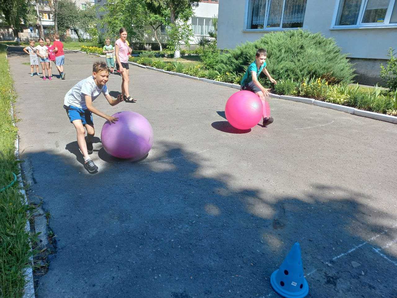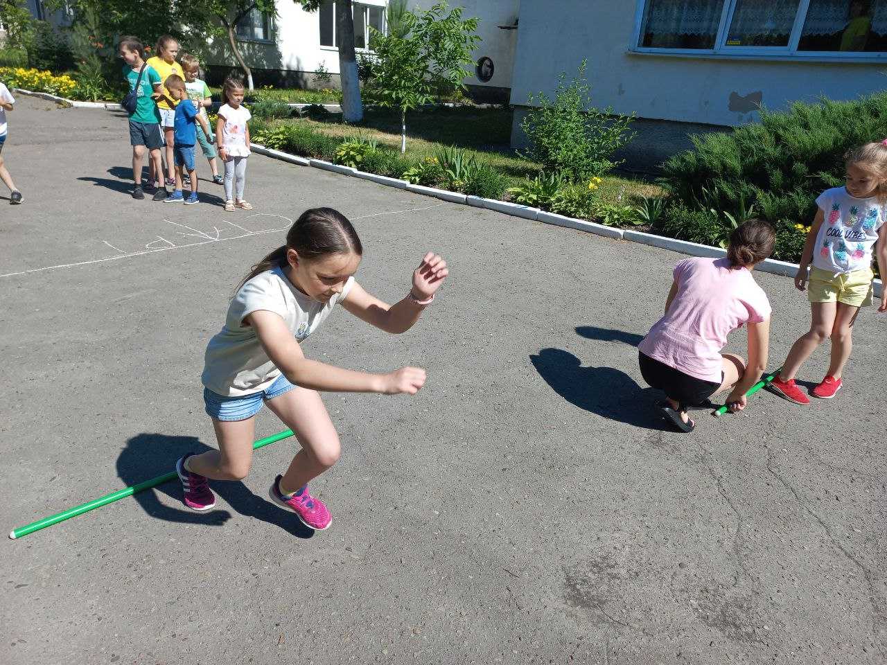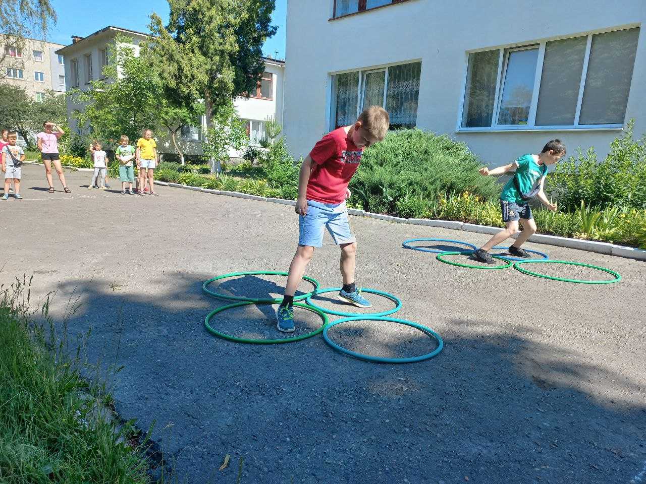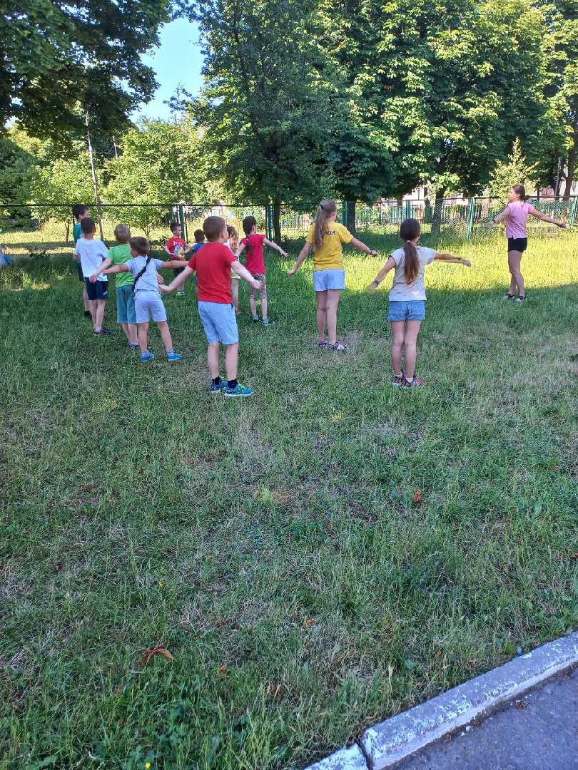 Сьогодні в нашій школі фізкультурно – оздоровчі заняття «Активне літо для українських дітей» пройшли весело та спортивно. Діти разом з вихователем Філевич Ю.В. виконували руханку під музику, вправи з палицею, грали в улюблені рухливі ігри та естафети. Учні отримали безліч емоцій, позитивних вражень. А рухливі ігри на свіжому повітрі додали ще й здоров’я. З гарним настроєм та великим задоволенням дітвора пішла додому. Ми з гордістю можемо сказати, що в нашій школі ростуть сильні, сміливі, спритні діти.
