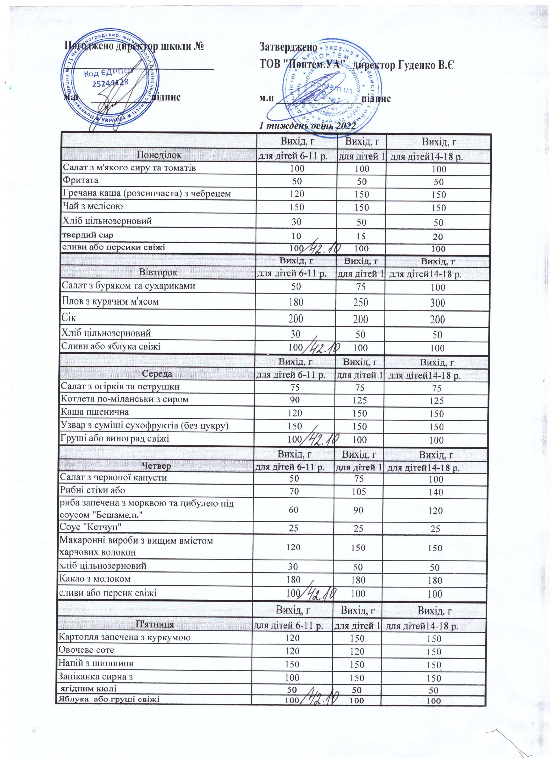 Примірне меню 05.09-09.09