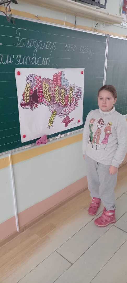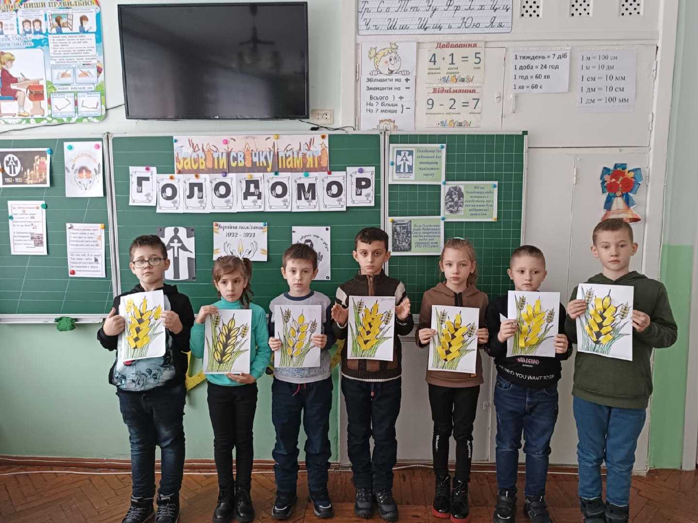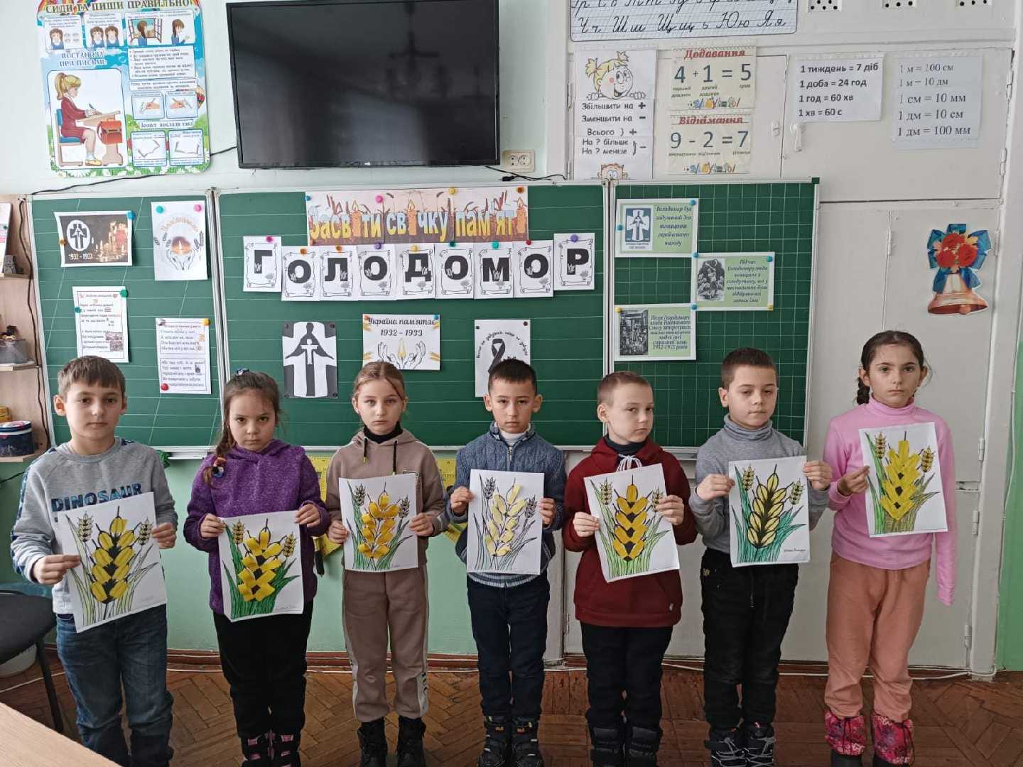 Щороку в Україні відзначається День пам'яті жертв Голодомору. Цей день припадає на 26 листопада. Це нагода згадати історію, вшанувати тих, чиє життя було зруйноване або знищене у ті страшні часи. До вшанування мільйонів вбитих голодом українців , долучилися і учні нашої школи , разом зі своїми класними керівниками. Діти слухали розповідь про трагедію що сталось 90 років тому, створили пам'ятну мапу , та запаливши свічки, пом'янули усіх заморених голодом дітей . Дізналися історичні дослідження , що дають змогу кожному дізнатись правду про страшні часи голоду.