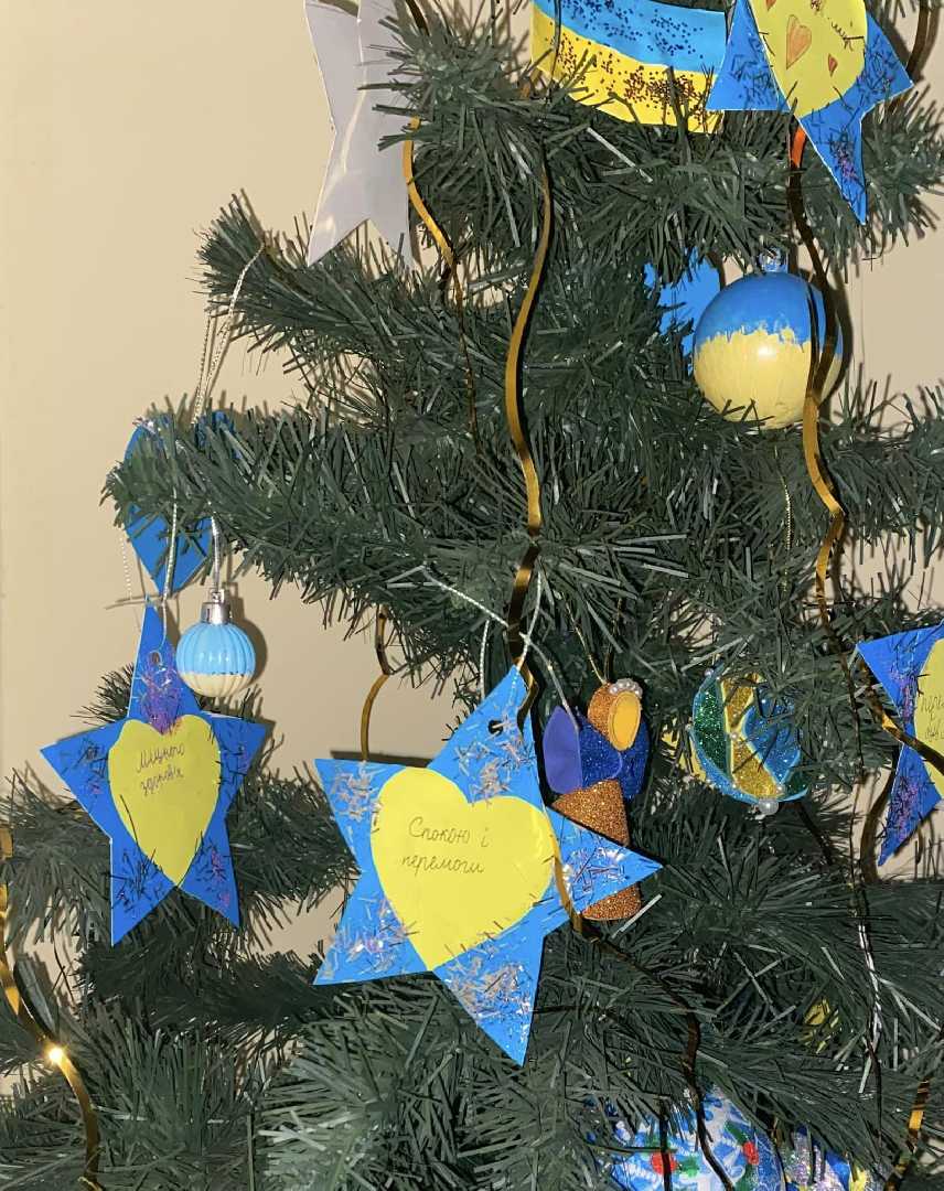 Цього року символ нового року Переможний! Його прикрасили школярі патріотичними іграшками виготовленими власноруч.