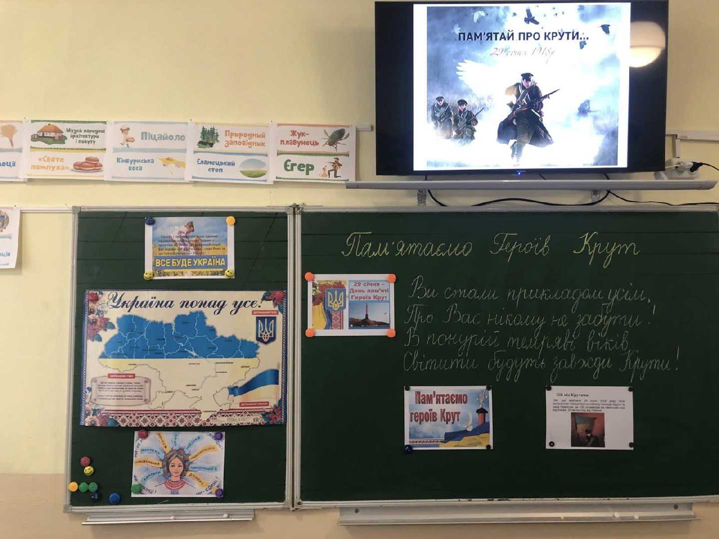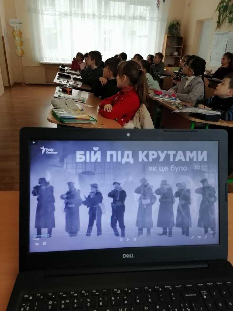 В Україні 29 січня відзначається День пам'яті Героїв Крут. Допоки історичні події живуть у нашій пам'яті, вони мають свою цінність. У 1-4 класах був проведений урок пам'яті "Пам'ятай про Крути". Не можна викреслити з пам'яті людської той великий та безсмертний подвиг юних студентів, що захищали українську державність, поклавши на її вівтар найцінніше - власне життя. Нехай пам'ять про наших героїв, що загинули під Крутами, буде вічною.