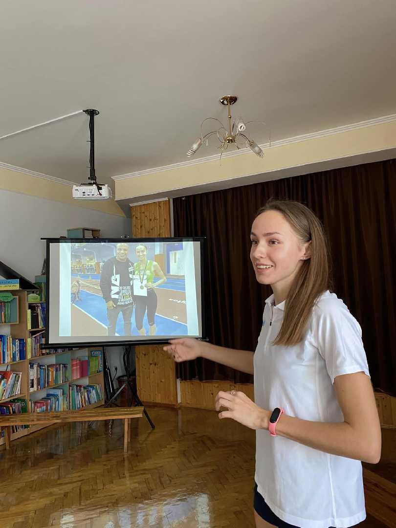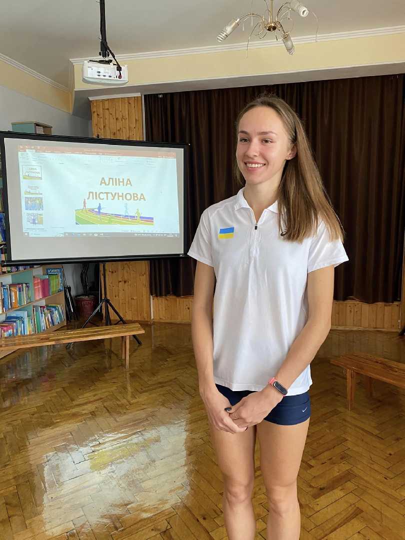 Сьогодні учні 4 -их класів, педагоги школи вели цікаву розмову з Аліною Лістуновою, майстром спорту України, багаторазовою чемпіонкою України та призеркою чемпіонатів України, учасницею Європейських ігор U23. Аліна розповіла дітям про свої перші кроки у спорті, наполегливість, вміння переборювати труднощі на шляху до перемоги. Такі зустрічі допомагають дітям зрозуміти, якщо не будете працювати для досягнення мети, то не зможете її досягти. І це стосується не лише спорту. Але спорт цьому навчає.