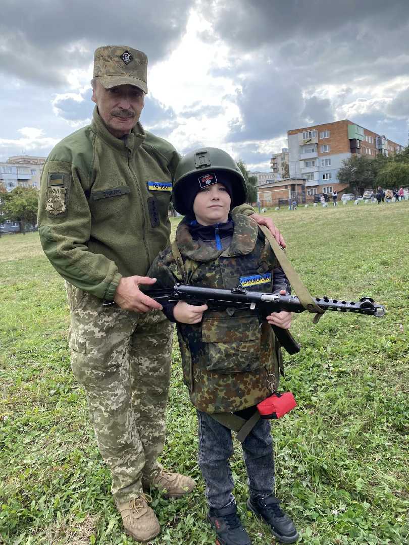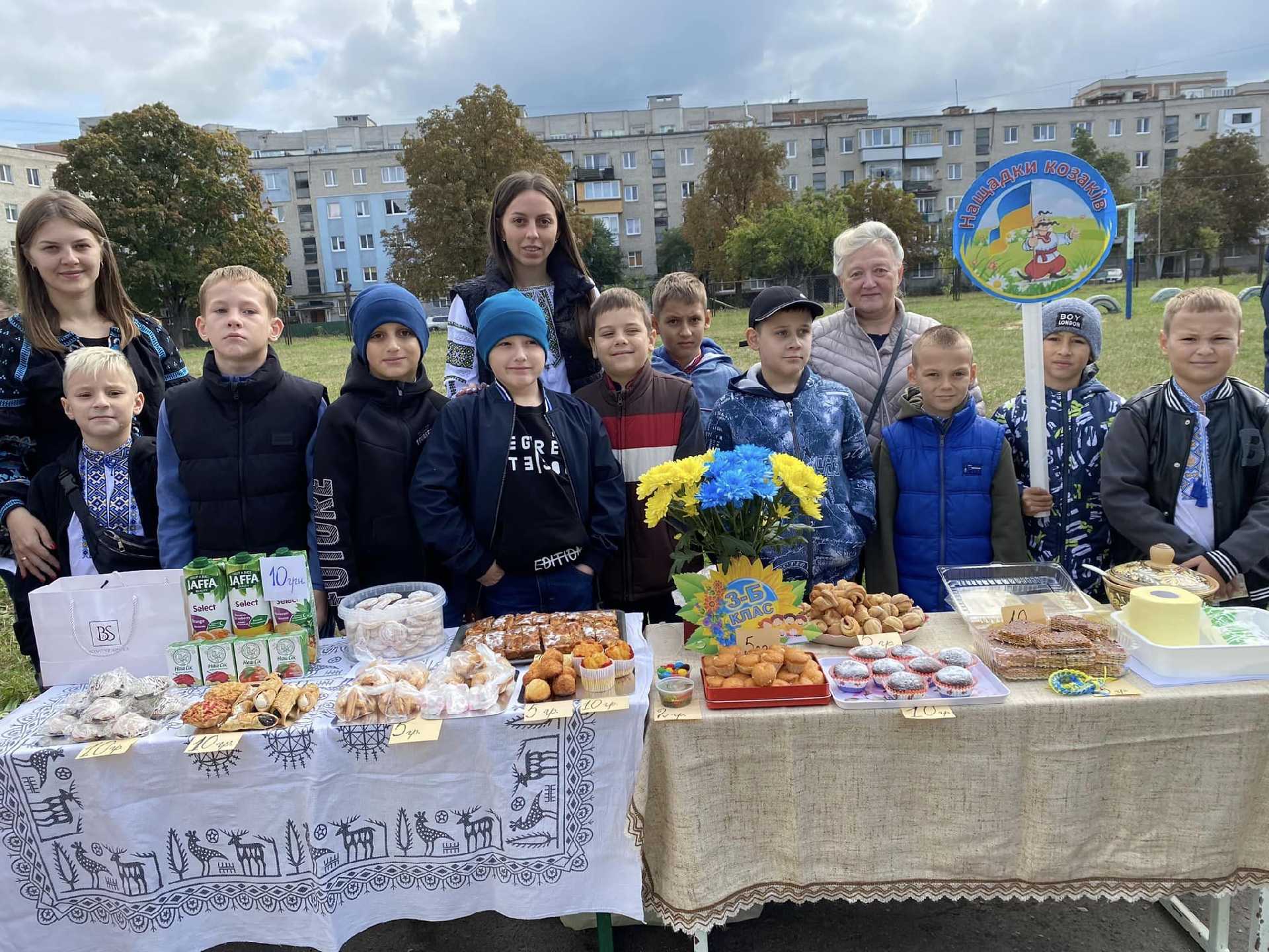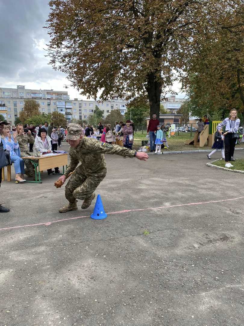 Сьогодні наші учні, вчителі, батьки та гості зібралися великою шкільною родиною на свято «Ми роду козацького діти, землі української цвіт». Усі взяли участь у ярмарку, безпрограшній лотереї, отримані кошти в сумі 21 393 грн ми спрямуємо на допомогу нашим воїнам. Представники учнів кожного клас взяли участь у конкурсі малюнків на асфальті «Я намалюю мирне небо». Повболівали за команди козаків учнів 4-А та 4-Б класів та солдатів військової частини Т0 410 у козацьких забавах, заповнили своїми побажаннями повітряну кулю, потренуватися у точності закидання кілець, а також поспостерігали за процесом приготування куліша і поспілкувалися з справжніми козаками. Серед запрошених гостей був присутній Василь Турко, командир громадського формування з охорони громадського порядку, безпеки та державного кордону, який продемонстрував і розказав дітям про різні види зброї. Козак Андрій Синиця приготував справжню козацьку страву – куліш. Військовий капелан отець Андрій Копчак (війскова частина Т0410) подякував дітям за активність у змаганнях та нагородив грамотами. Дякуємо нашим захисникам і захисницям ЗСУ за можливість проживати кожен день на благо України, її сьогодення та майбутнього.