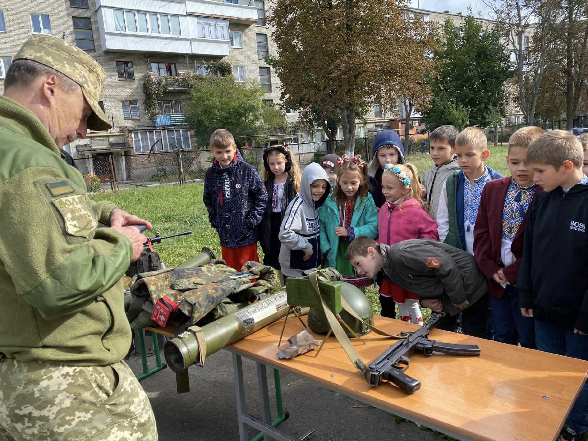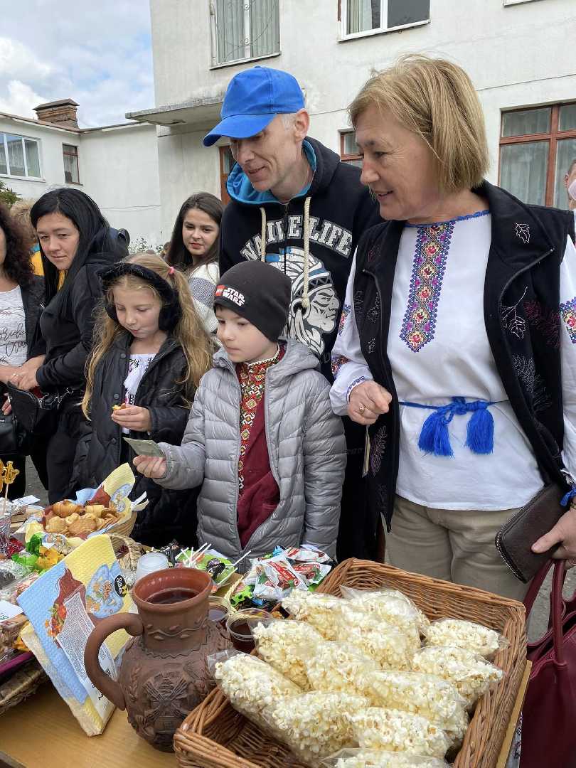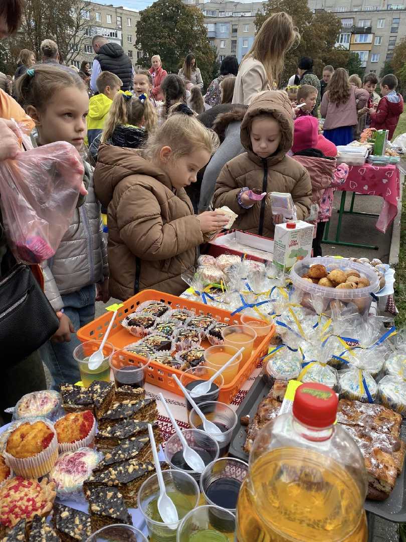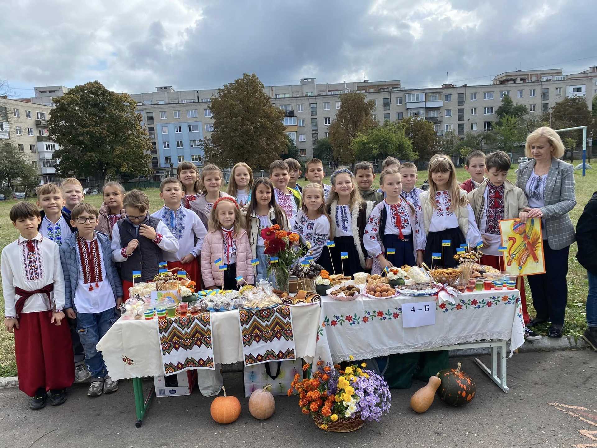 Сьогодні наші учні, вчителі, батьки та гості зібралися великою шкільною родиною на свято «Ми роду козацького діти, землі української цвіт». Усі взяли участь у ярмарку, безпрограшній лотереї, отримані кошти в сумі 21 393 грн ми спрямуємо на допомогу нашим воїнам. Представники учнів кожного клас взяли участь у конкурсі малюнків на асфальті «Я намалюю мирне небо». Повболівали за команди козаків учнів 4-А та 4-Б класів та солдатів військової частини Т0 410 у козацьких забавах, заповнили своїми побажаннями повітряну кулю, потренуватися у точності закидання кілець, а також поспостерігали за процесом приготування куліша і поспілкувалися з справжніми козаками. Серед запрошених гостей був присутній Василь Турко, командир громадського формування з охорони громадського порядку, безпеки та державного кордону, який продемонстрував і розказав дітям про різні види зброї. Козак Андрій Синиця приготував справжню козацьку страву – куліш. Військовий капелан отець Андрій Копчак (війскова частина Т0410) подякував дітям за активність у змаганнях та нагородив грамотами. Дякуємо нашим захисникам і захисницям ЗСУ за можливість проживати кожен день на благо України, її сьогодення та майбутнього.