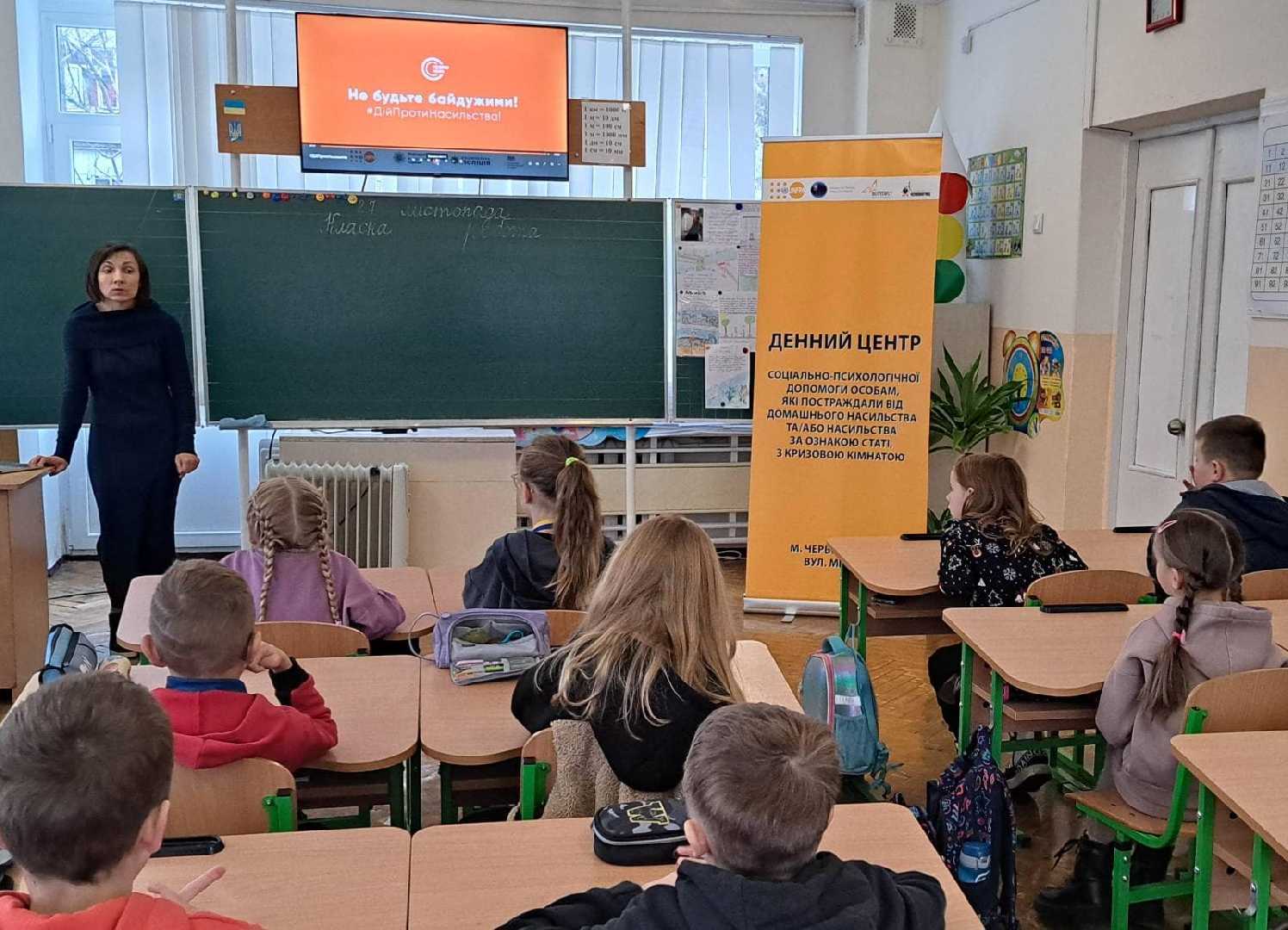 Сьогодні в рамках акції "16 днів проти насильства", учні 2-А класу (кл. керівник Наталія Благута та асистент вчителя Марія Турко) мали зустріч з представниками Денного центру соціально-психологічної допомоги постраждалим від домашнього насильства. Школярі дізнались про форми насильства, а також методи недопущення і комплексного реагування на будь-які його прояви. Діти ознайомились з роботою денного центру та переглянули й обговорили короткометражну стрічку "Просто грай!" про дівчинку з інвалідністю, скрипачку Міру. На завершення учні виготовили долоньки "Стоп насильству" і зробили висновок, що чуйність перемагає насильство.