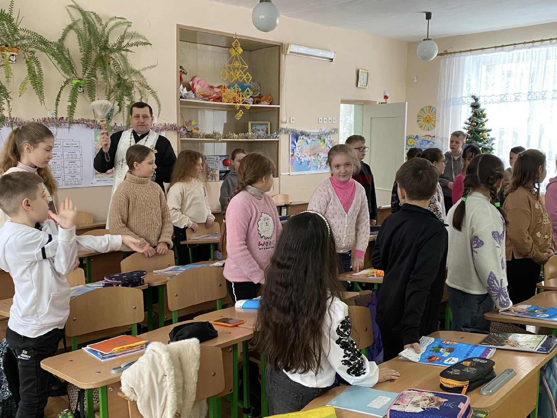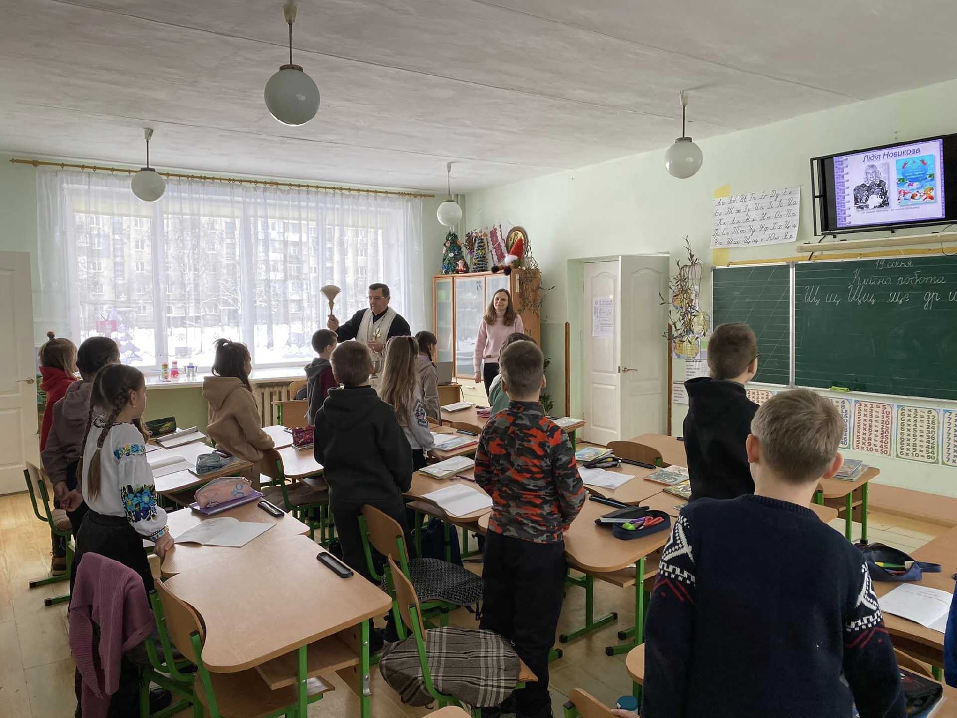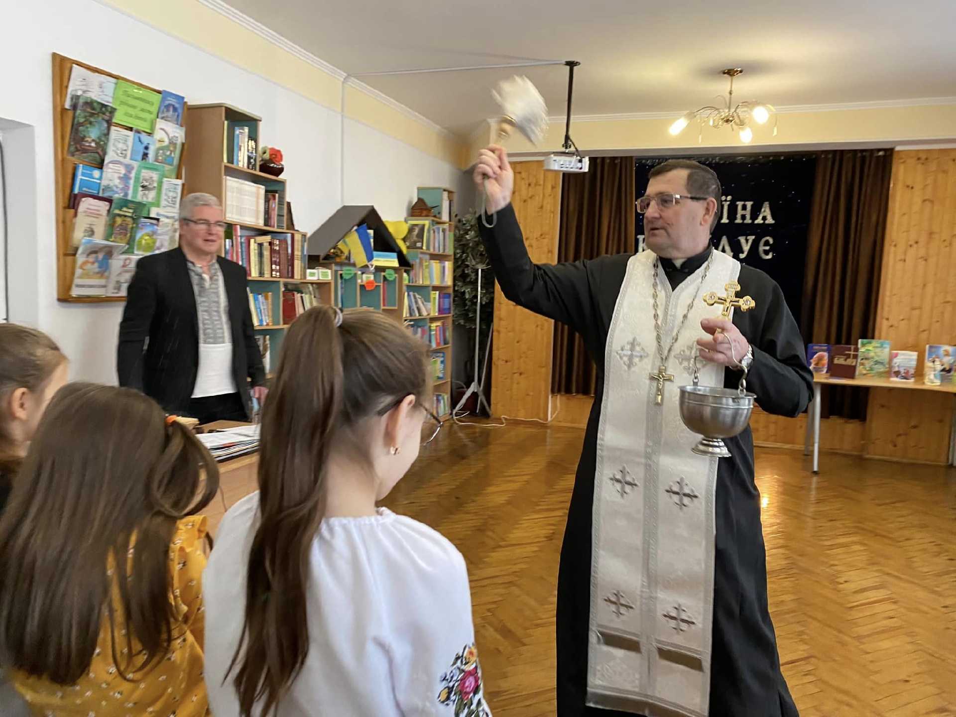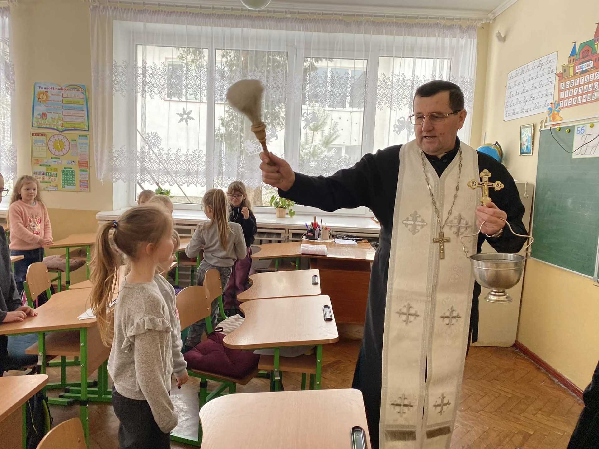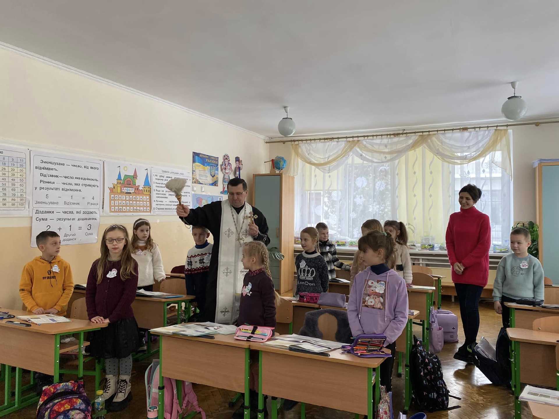 Духовний наставник нашої школи отець Іван Макух із Собору рівноапостольного князя Володимира сьогодні окропив нашу школу святою йорданською водою та благословив учнів і педагогів на добрі справи й успішне навчання. Спільною молитвою ми просили у Господа Бога захисту для наших мужніх захисників та якнайшвидшої Перемоги для нашої України.