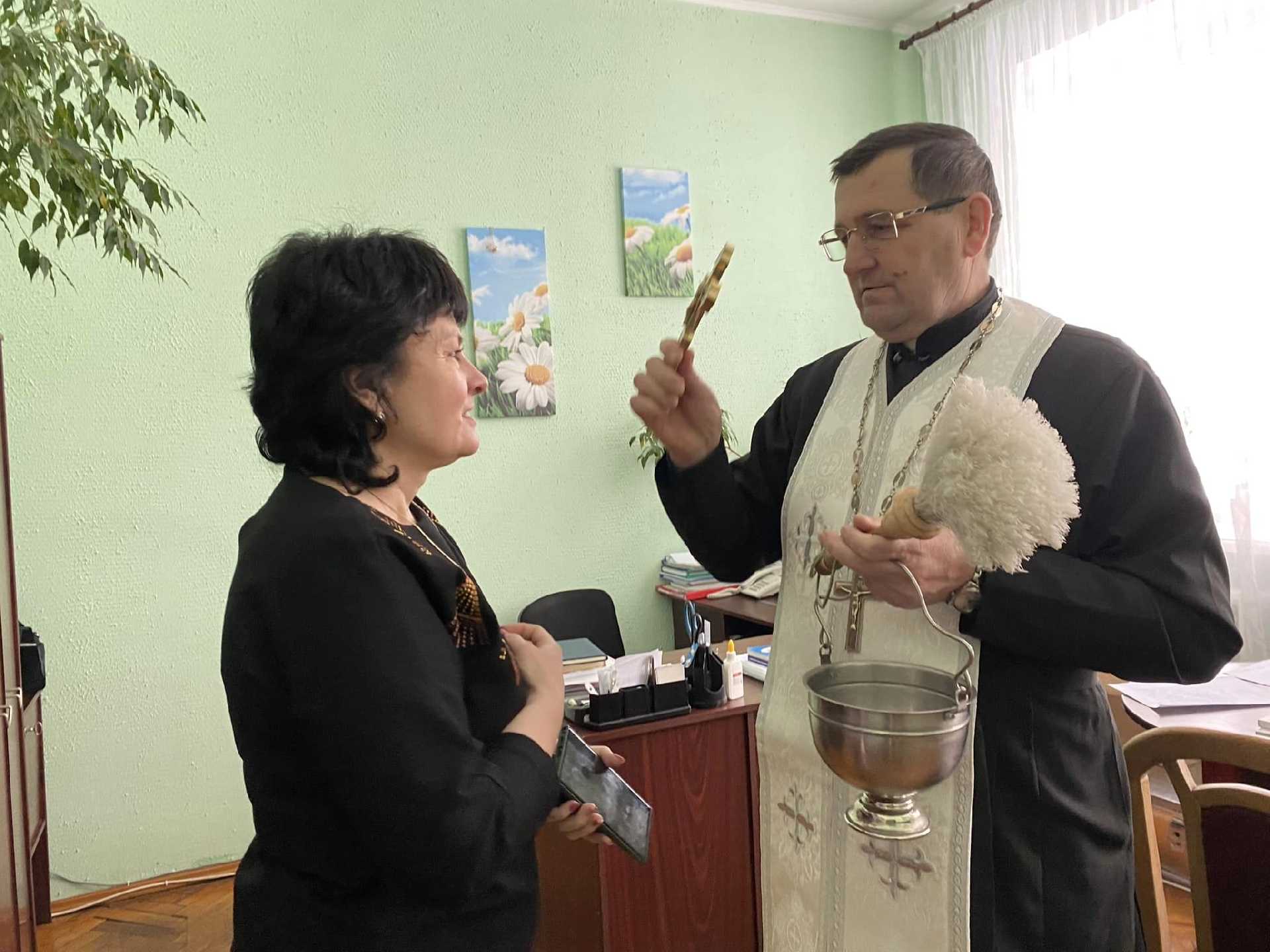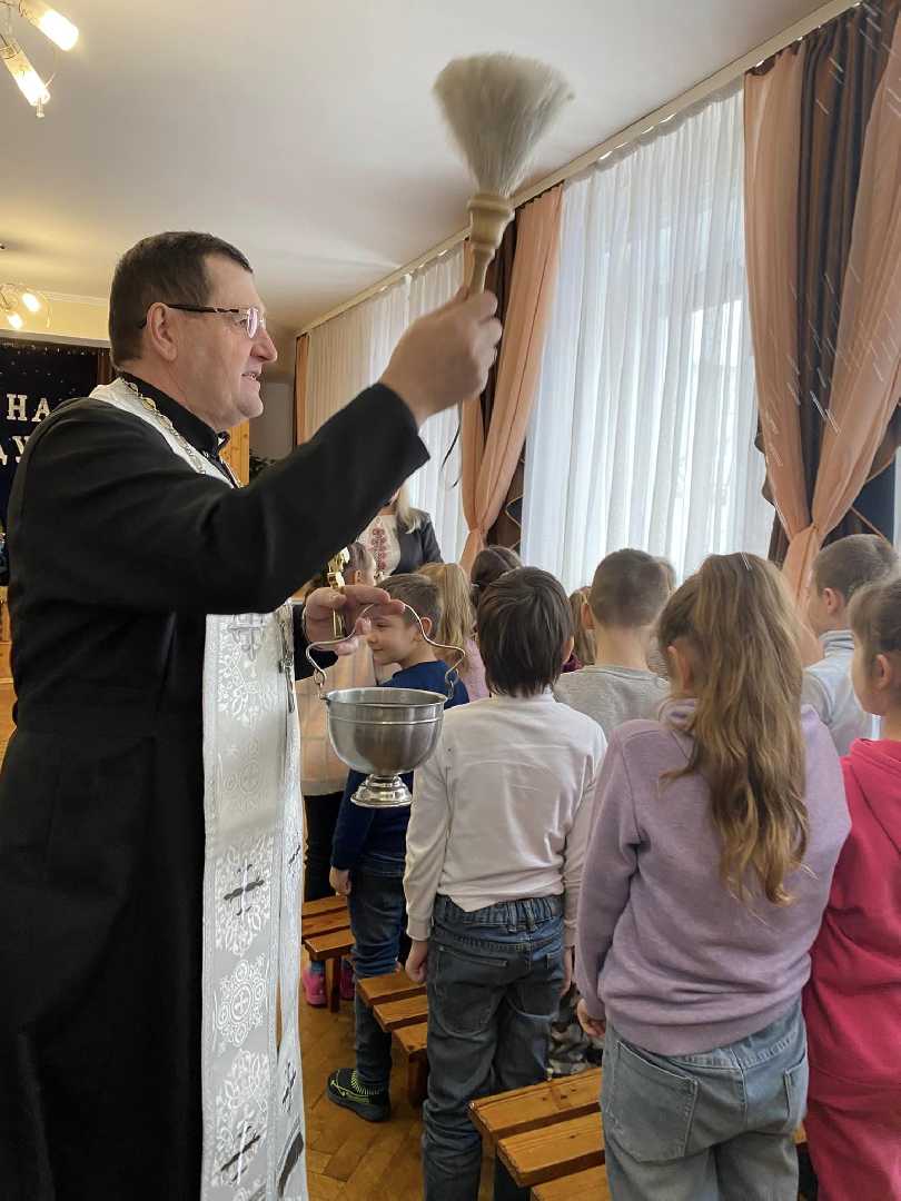 Духовний наставник нашої школи отець Іван Макух із Собору рівноапостольного князя Володимира сьогодні окропив нашу школу.