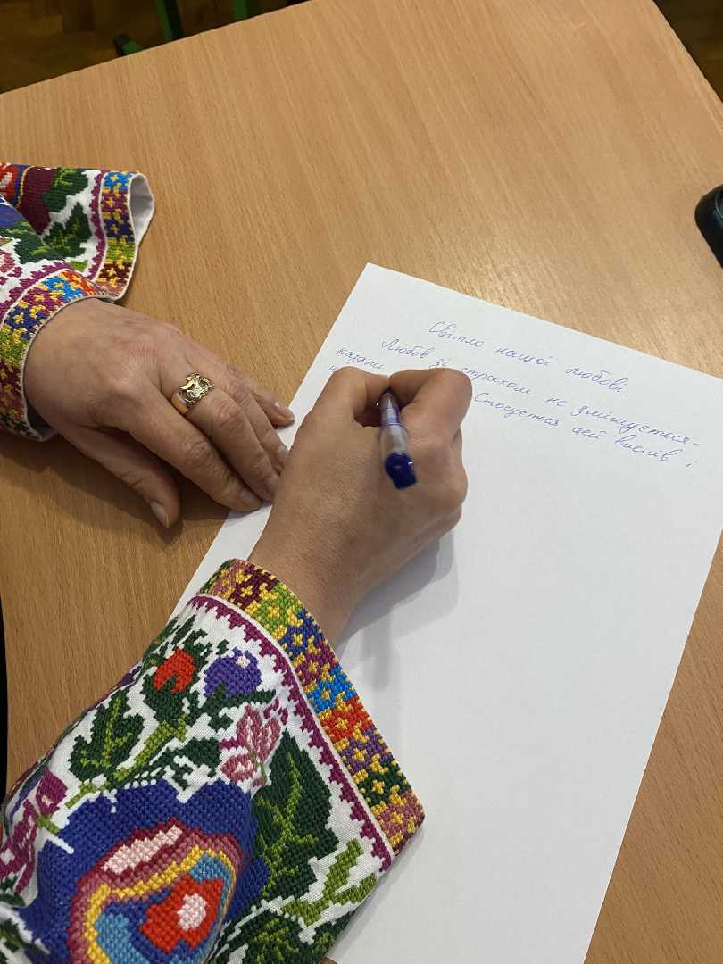 #ДИКТАНТ_ЄДНОСТІ_2024 З нагоди відзначення Дня рідної мови, працівники нашої школи долучилися до написання спільного диктанту єдності. Під час написання диктанту ми відчували гордість за нашу Вітчизну, наших мужніх захисників, піднесення радість та непохитну віру у нашу Перемогу.