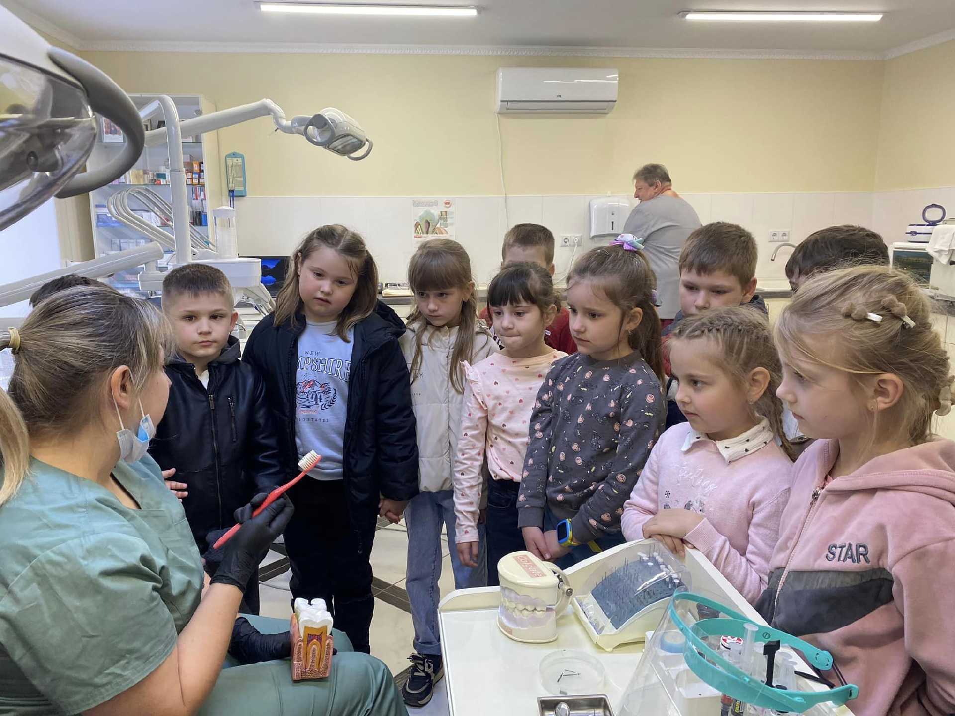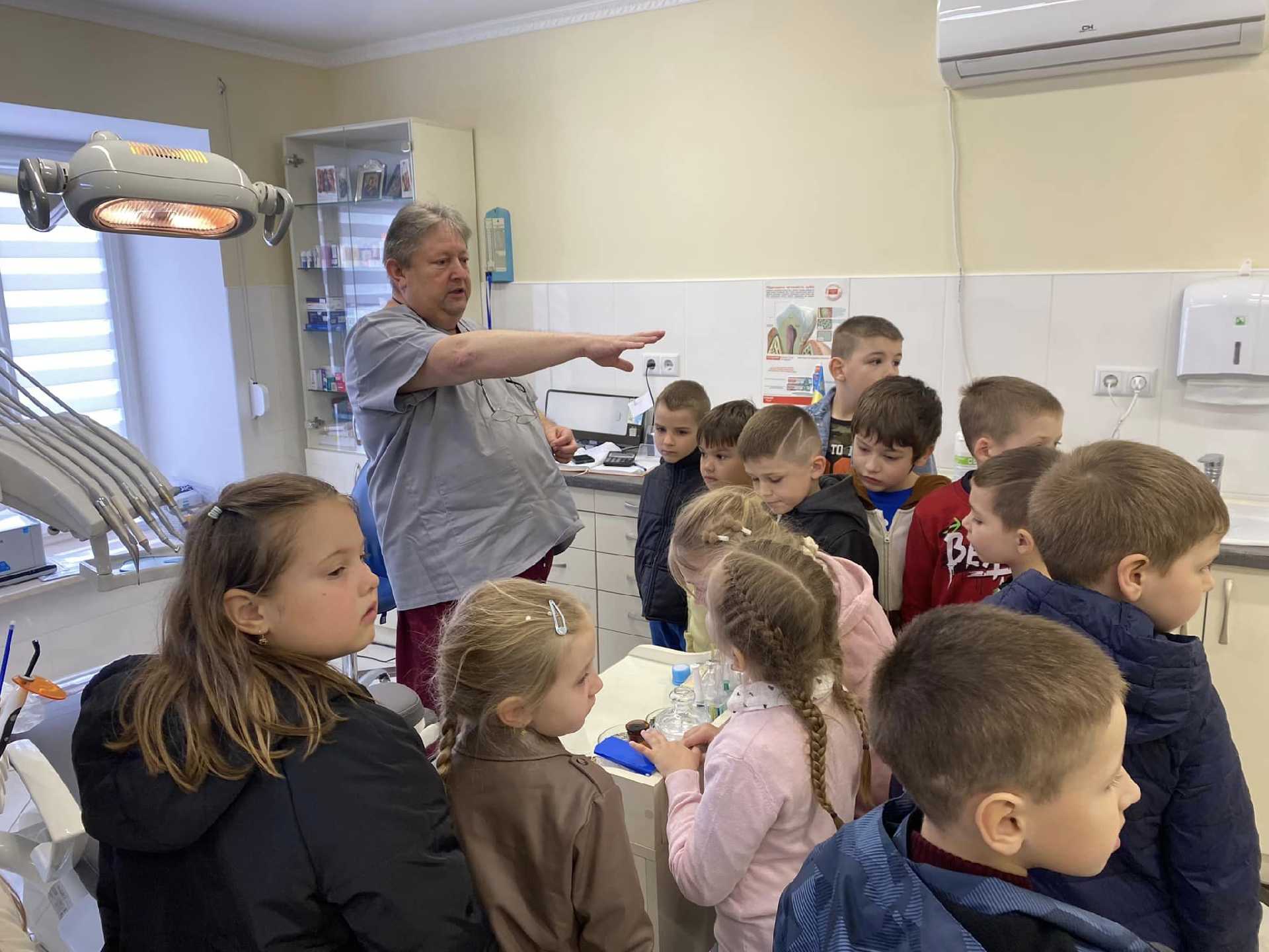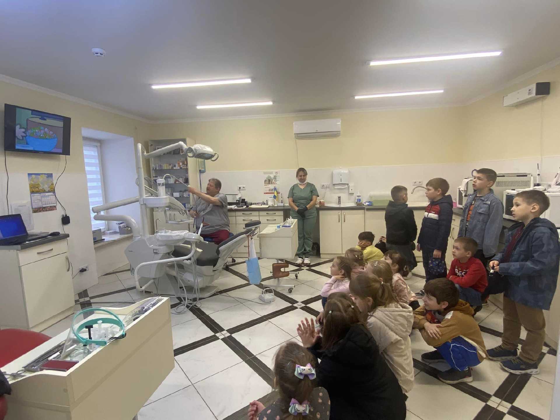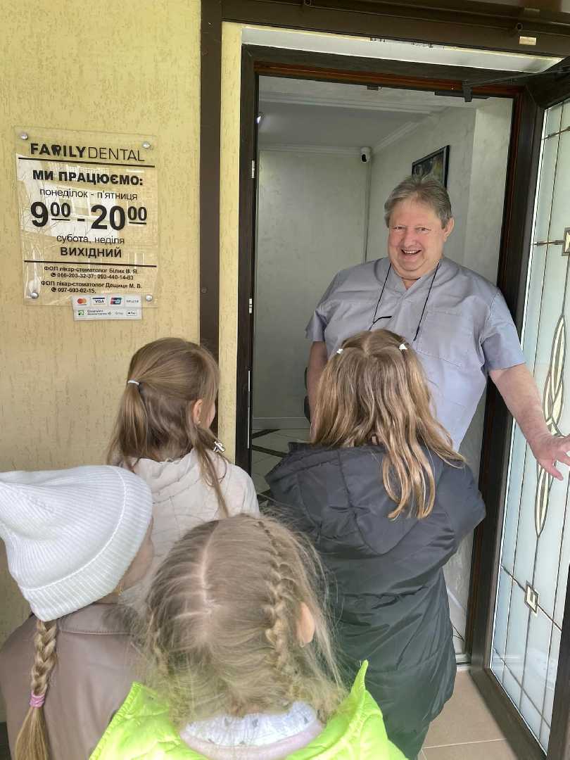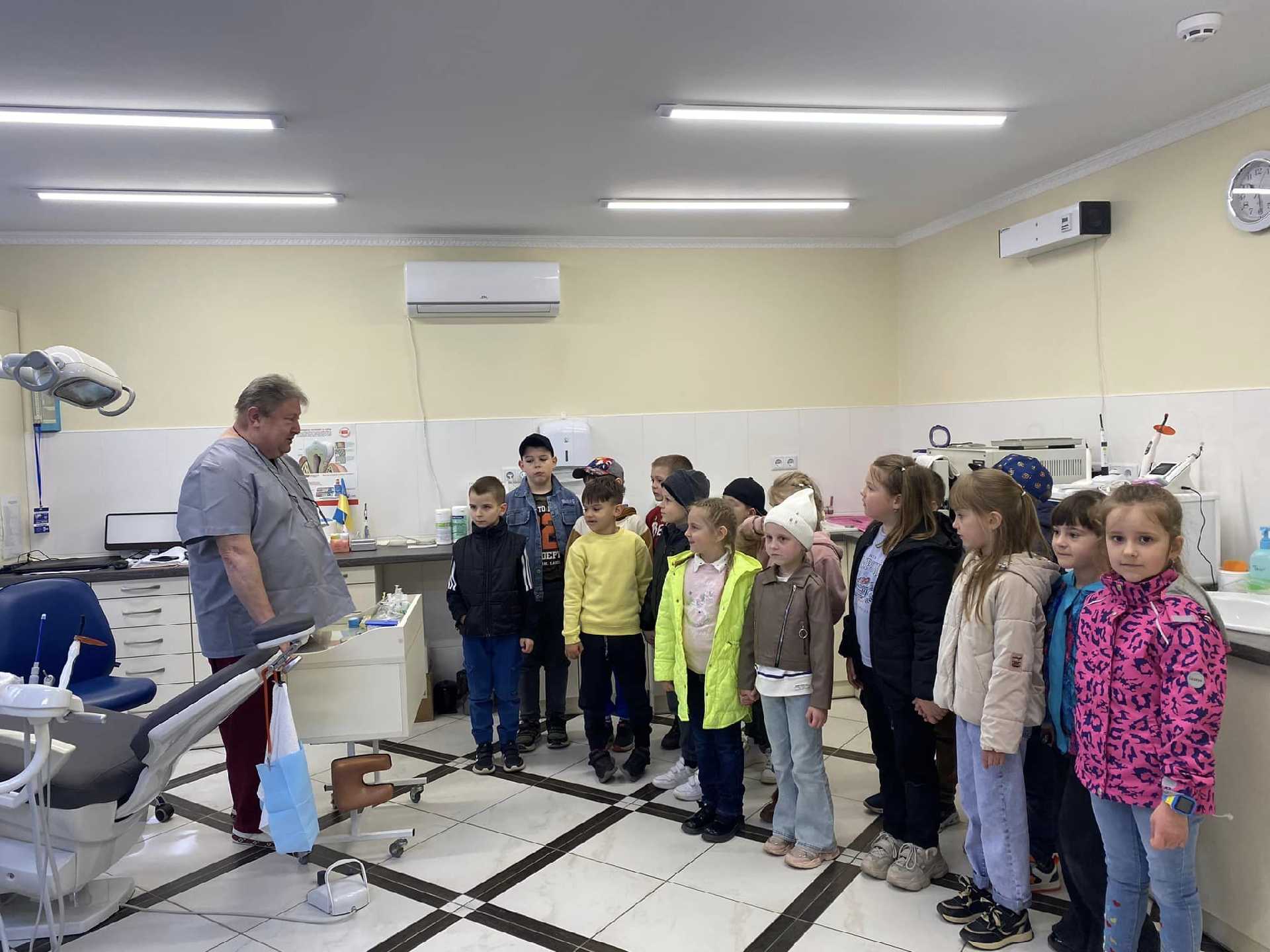 #ТИЖДЕНЬ_ПРОФОРІЄНТАЦІЇ_У_НАШІЙ_ШКОЛІ Учні 1-Б класу (кл.керівник Оксана Станасюк та асистент вчителя Тетяна Ковальчук, вихователь Оксана Федорук) мали чудову нагоду познайомитись з професією #лікаря_стоматолога. У цьому їм радо допомогли дідусь учениці Ані Дещиці -Володимир Білик та її мама - Марʼяна Дещиця з стоматологічної клініки "Family dental"Школярам провели цікаву та пізнавальну екскурсію. Поринули у дивовижний світ чарівників-стоматологів, дізналися про правильну гігієну ротової порожнини, переглянули мультфільм про зубчики, які переслідував набридливий карієс. ???? Діти дізналися, що догляд за зубами це важливо і цікаво. Велика шана нашим Захисникам за можливість пізнавати цей світ!