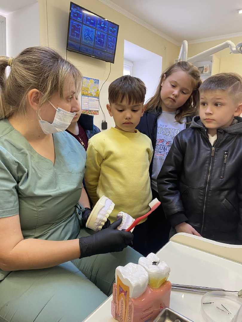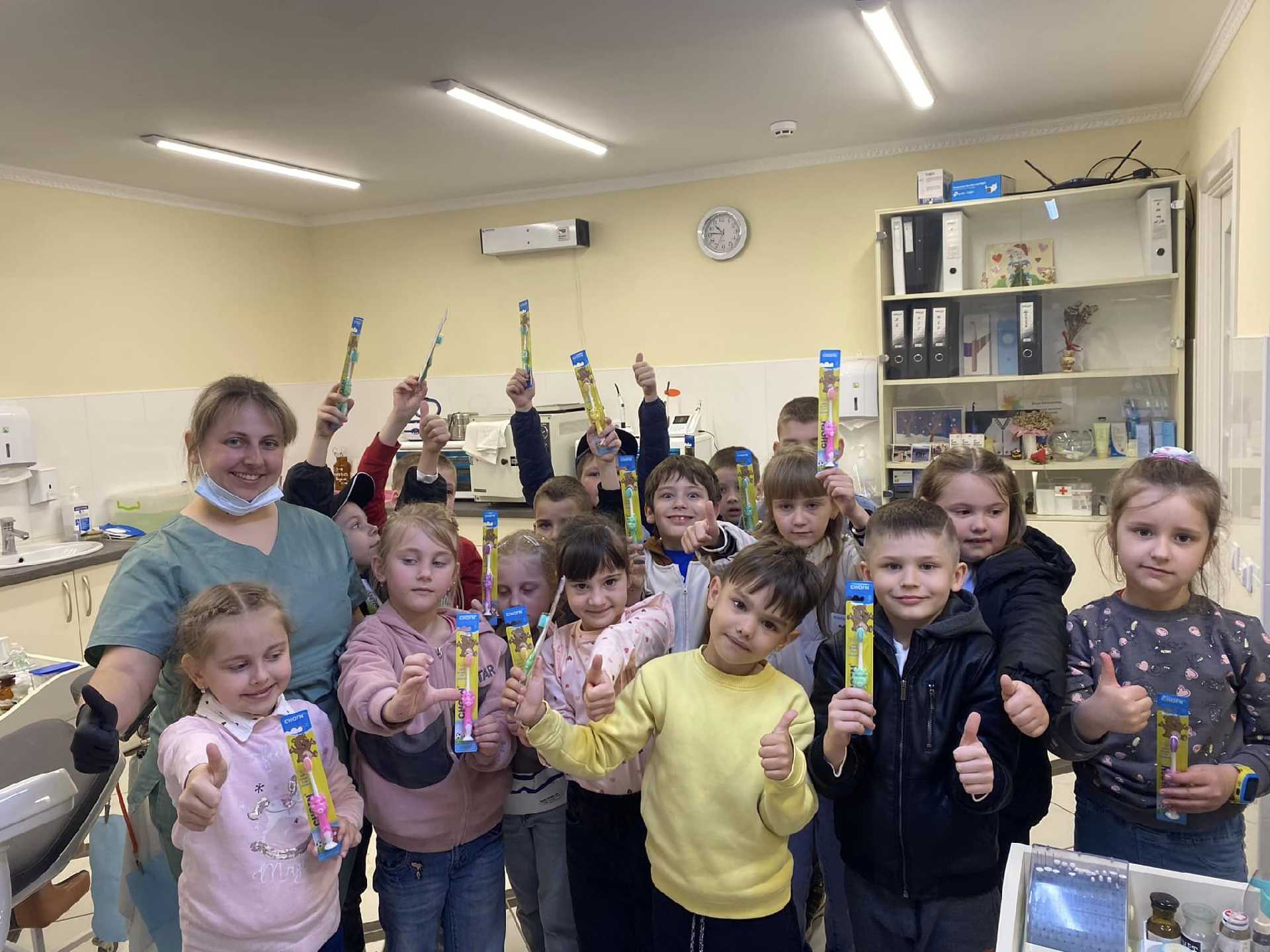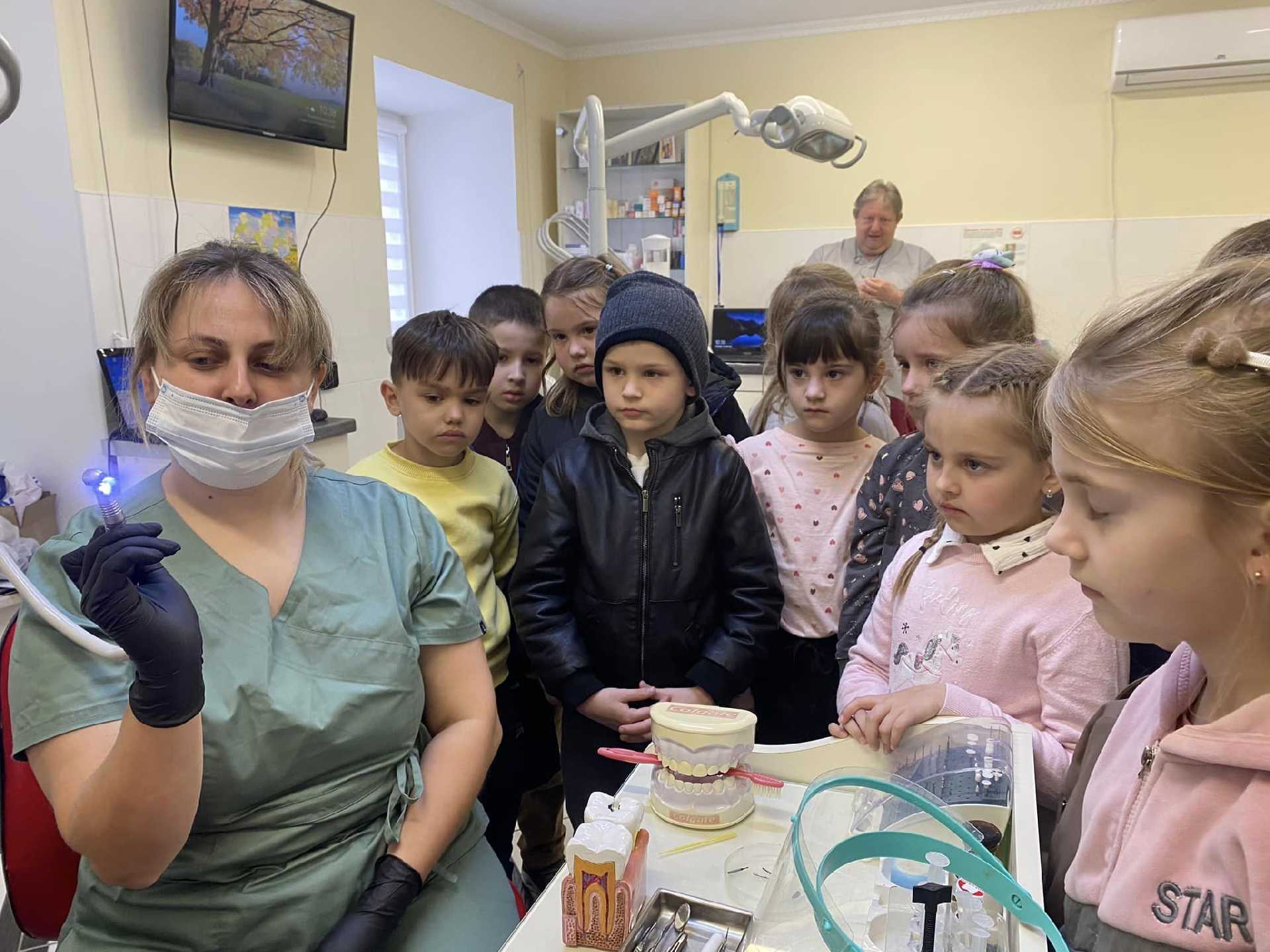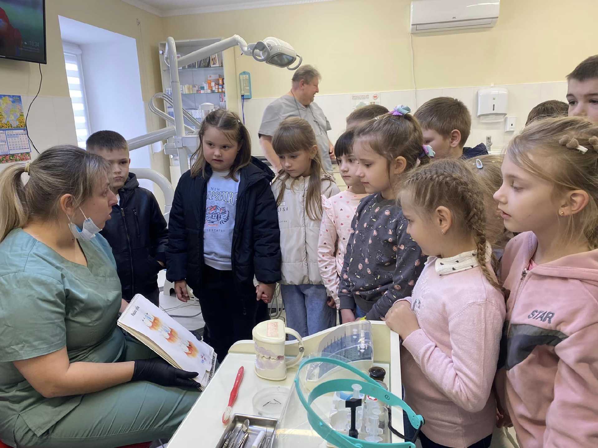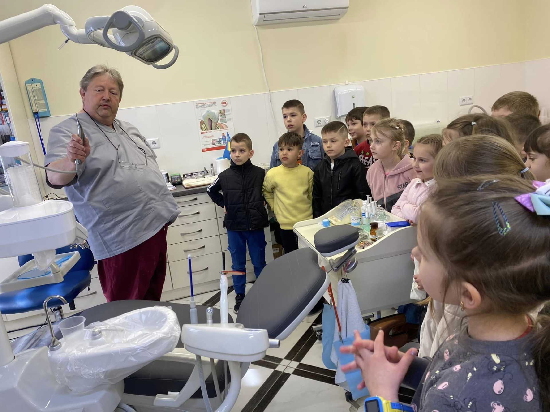 #ТИЖДЕНЬ_ПРОФОРІЄНТАЦІЇ_У_НАШІЙ_ШКОЛІ Учні 1-Б класу (кл.керівник Оксана Станасюк та асистент вчителя Тетяна Ковальчук, вихователь Оксана Федорук) мали чудову нагоду познайомитись з професією #лікаря_стоматолога. У цьому їм радо допомогли дідусь учениці Ані Дещиці -Володимир Білик та її мама - Марʼяна Дещиця з стоматологічної клініки "Family dental"Школярам провели цікаву та пізнавальну екскурсію. Поринули у дивовижний світ чарівників-стоматологів, дізналися про правильну гігієну ротової порожнини, переглянули мультфільм про зубчики, які переслідував набридливий карієс. ???? Діти дізналися, що догляд за зубами це важливо і цікаво. Велика шана нашим Захисникам за можливість пізнавати цей світ!