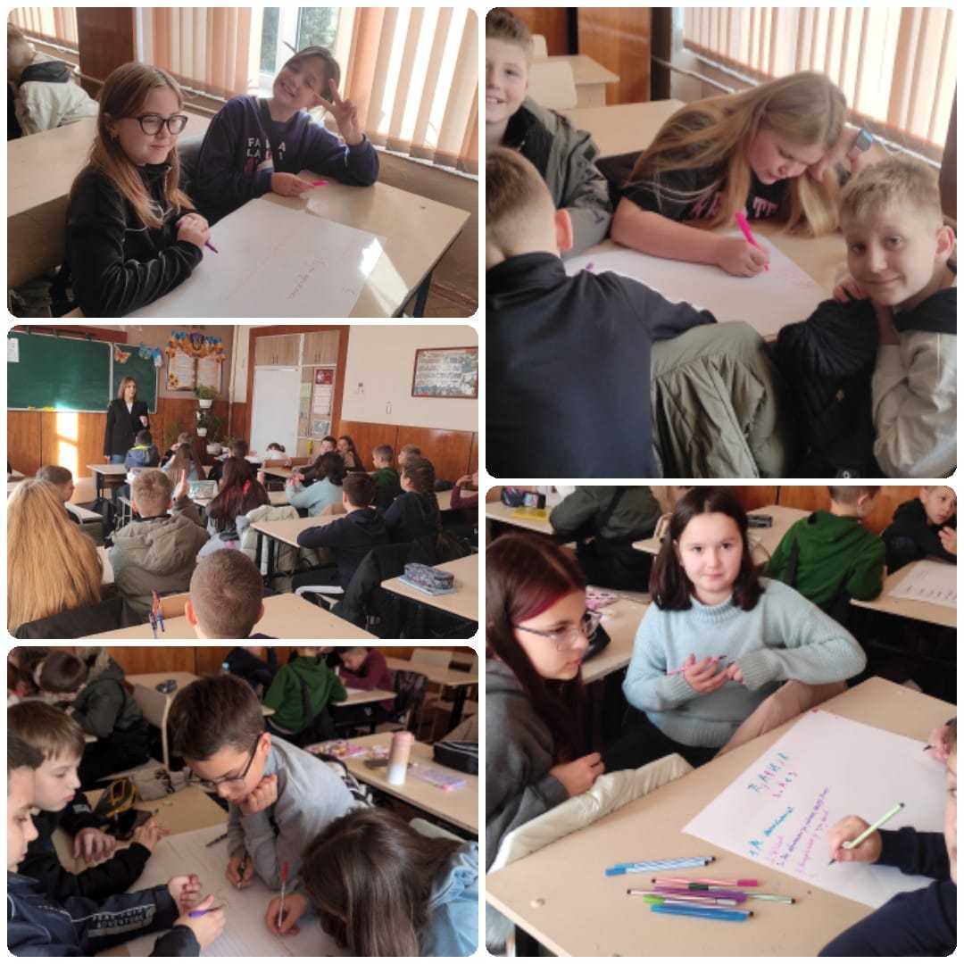 Для учнів 6-А, 6-В, 6-Г, 6-Д класів, психологічною службою, було проведено карткову ігрову методику «Коло безпеки» на тему: «Дитина і булінг». Мета заняття з учнями про булінг — сформувати в них розуміння проблеми булінгу, його форм і наслідків, навчити протидіяти йому, сприяти створенню безпечного та дружнього середовища в колективі.
