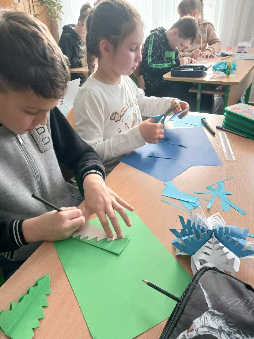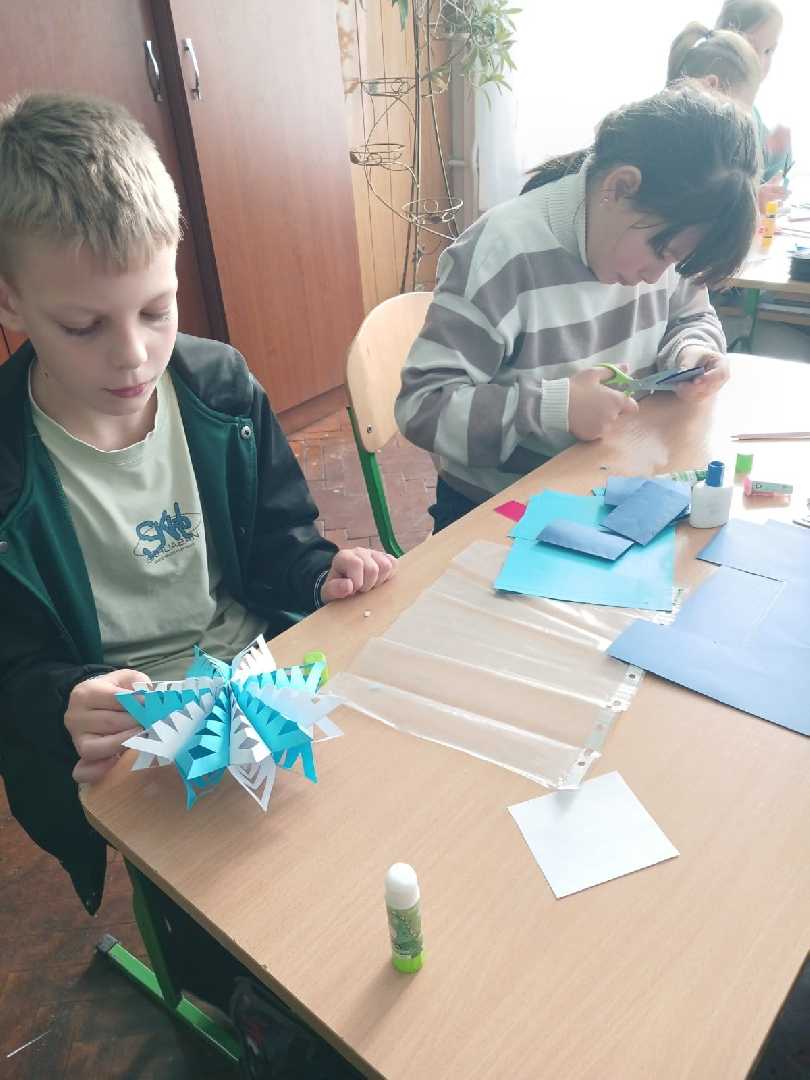 Для учнів 4-Б класу учитель Бац В.І. провела майстер-клас з виготовлення новорічної прикраси - сніжинки.
