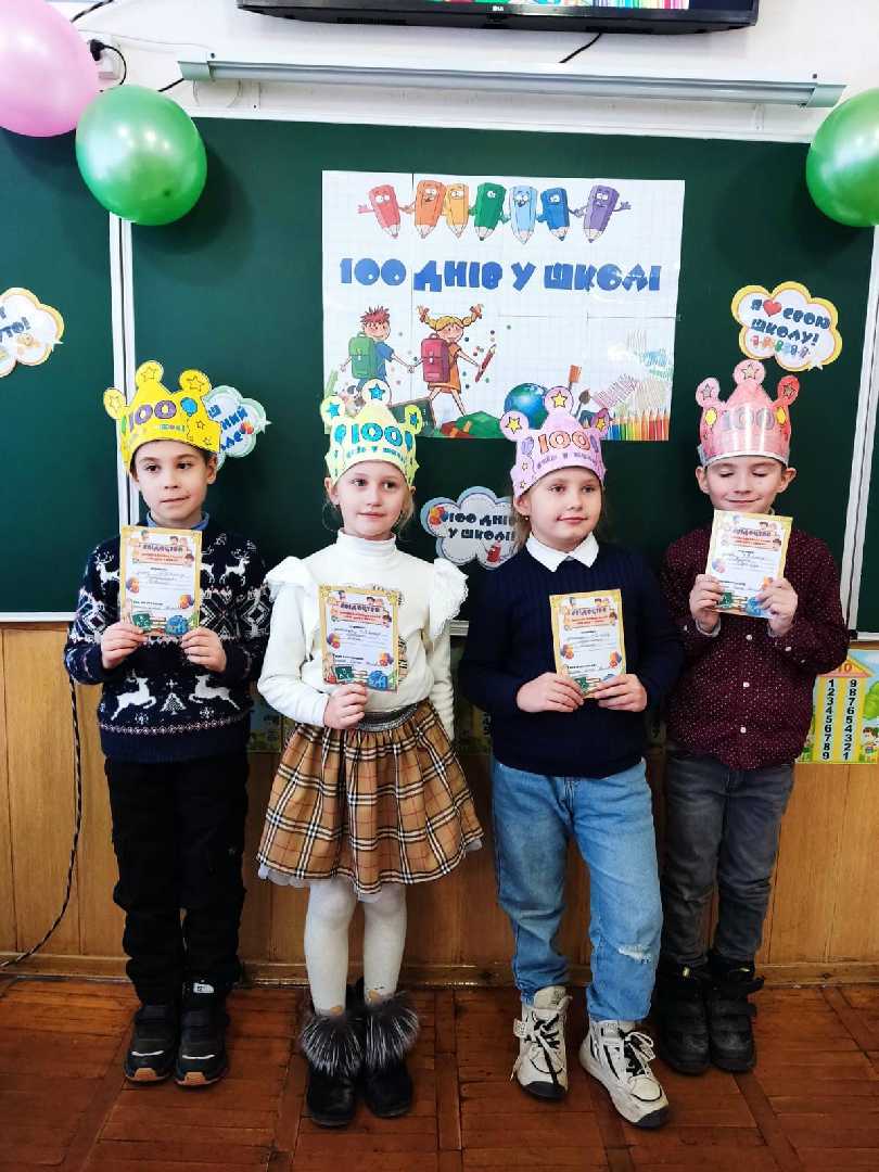 Сьогодні учні 1-В класу ( вчитель Єдинак О.І, асистент Піляк І.В) весело, цікаво та пізнавально відзначили своє перше свято 100 ДНІВ У ШКОЛІ. Першокласники звітували про свої перші досягнення і з радістю виконували завдання від Королеви Знань.
